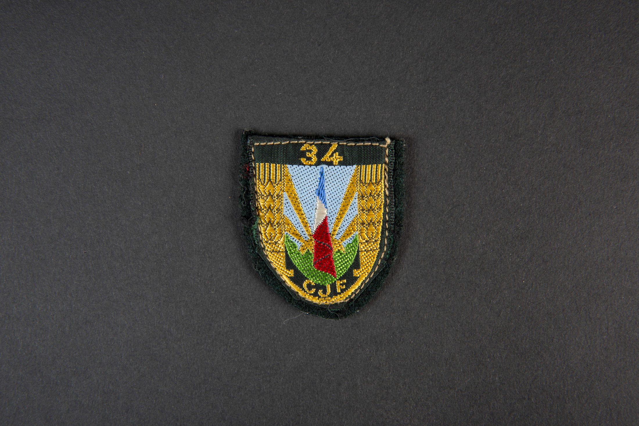 Lot d’insignes et de diplômes du Groupement 34 ayant appartenu au jeune Mazuel Moïse comprenant son certificat de moralité et d’aptitude daté du 30 octobre 1942 portant quelques déchirures, sa barrette de Chef d’équipe, un insigne en tissus du modèle général monté sur drap en vert forêt, un insigne général en métal émaillé de fabrication Drago Beranger, un insigne en tissus du Groupement 34 monté sur drap en vert forêt hauteur 63mm, un insigne de béret sur fond vert monté sur drap vert, un insigne métallique émaillé de fabrication Drago Beranger. Le Groupement 34 dit Sully était situé à Mézières-en-Brenne (Indre) puis à La Rochelle (Charente-Maritime). Provenance collection Christian Cournol.