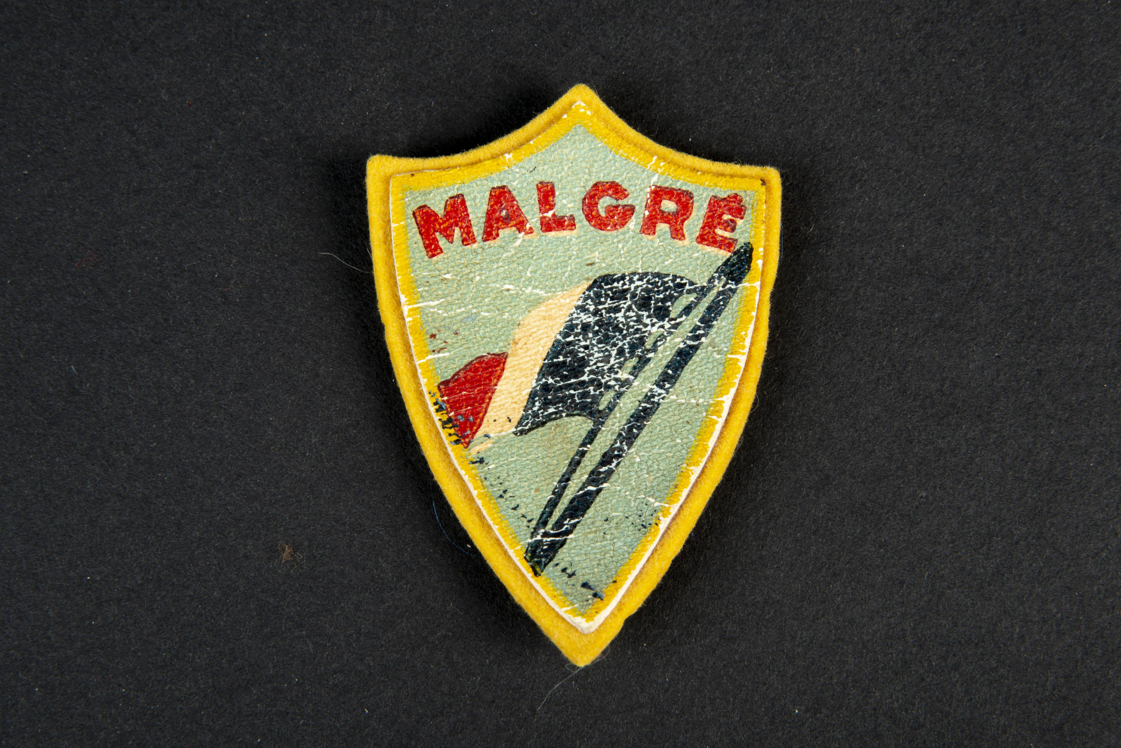 Lot de 2 insignes du Groupement 23 comprenant un insigne en cuir peint collé sur une feutrine jaune correspondant au groupe de direction, un insigne en aluminium peint sans fabricant. Le... en savoir plus
