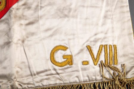 Un fanion du Groupement 25 Groupe 8 Lyautey sur une face en soie grise se trouve l’insigne du Groupement brodé en fils doré ainsi que les mentions CJF25 sur un ruban tricolore ainsi que... en savoir plus