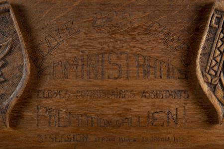 Un panneau en bois de l’école des Chefs administratifs des Chantiers de la jeunesse, des élèves commissaires assistants. Promotion Gallieni 3ème session 28 août 1943 28 janvier 1944.... en savoir plus