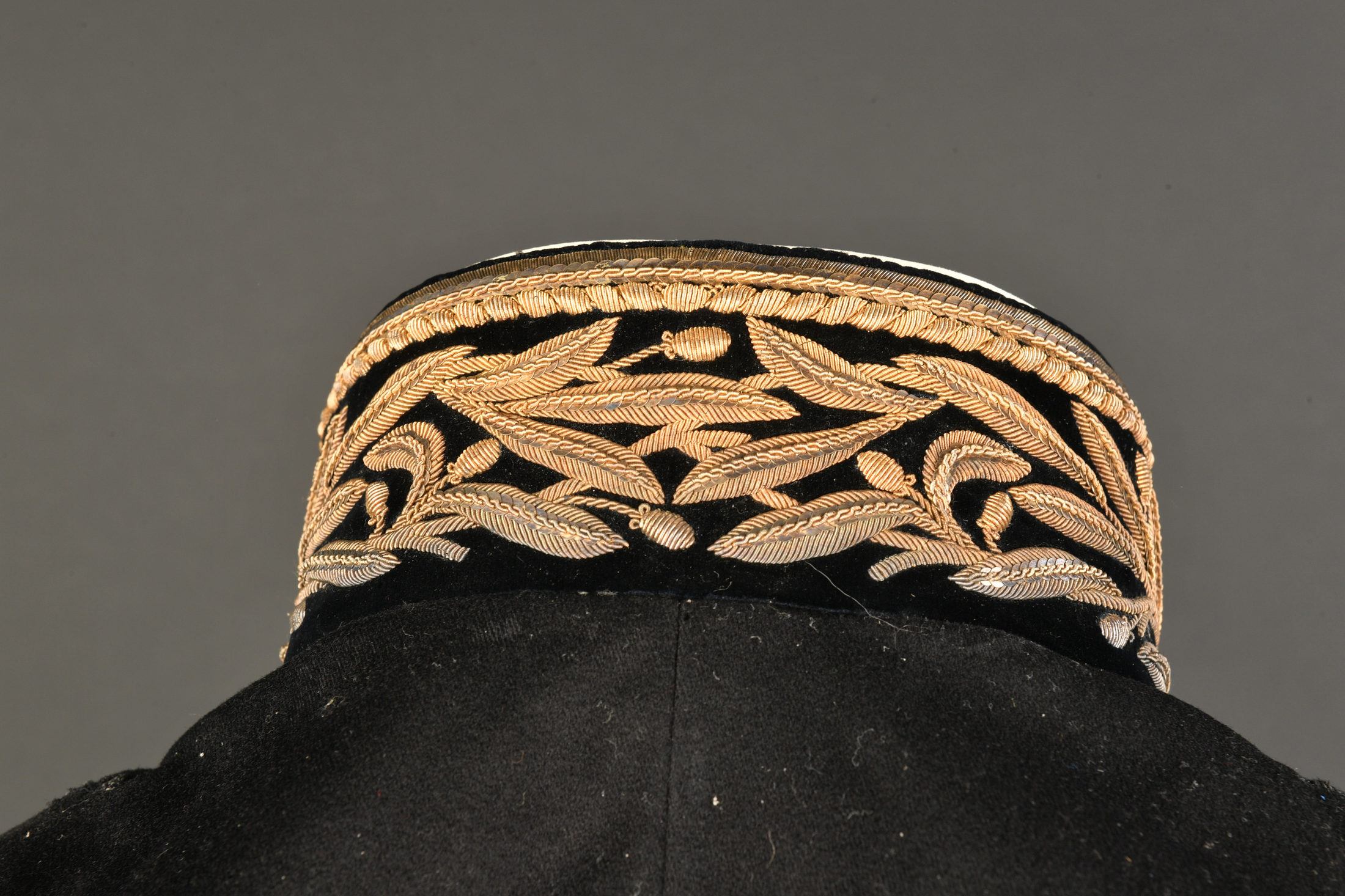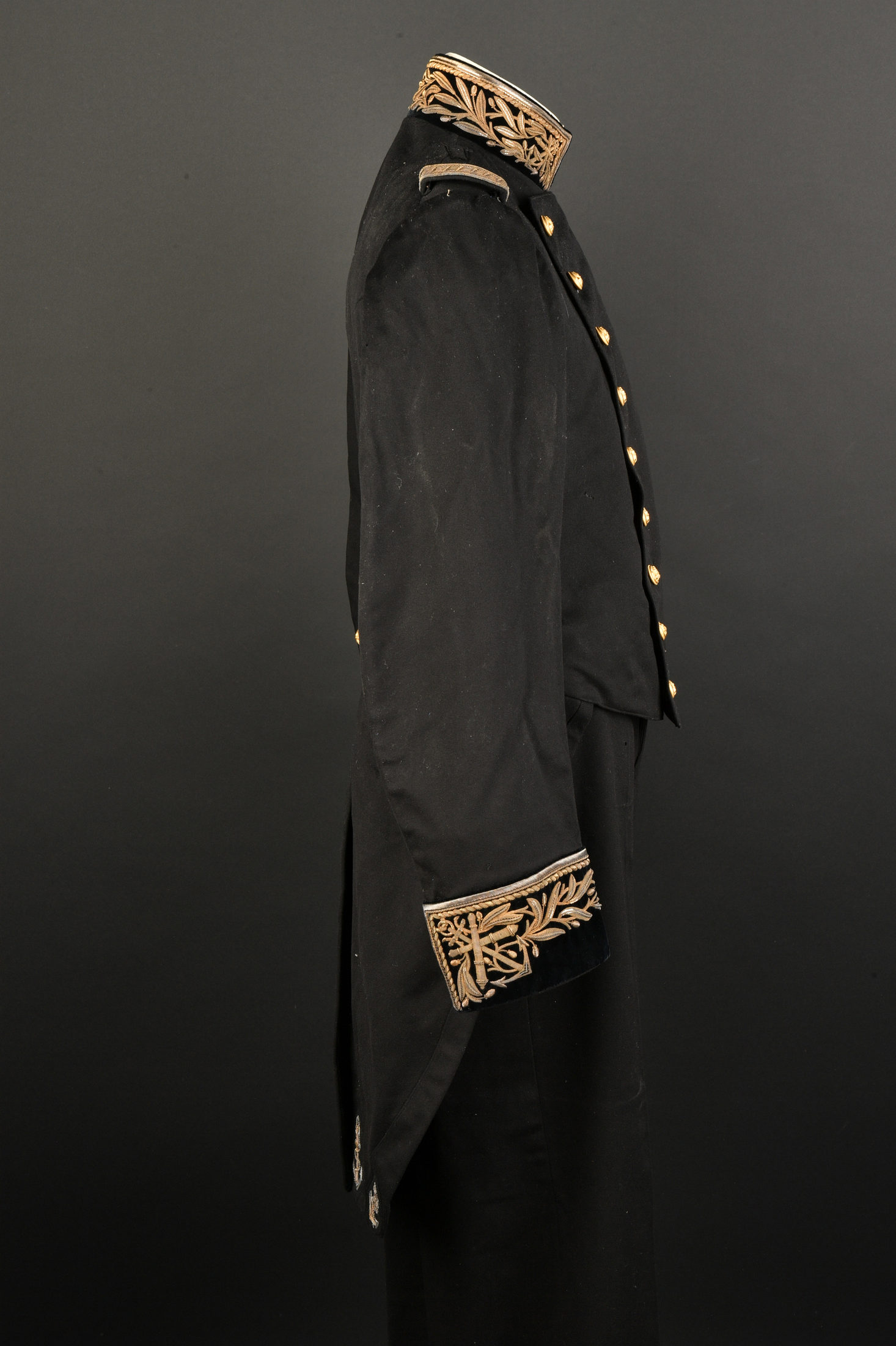 Habit de gala de Capitaine de Vaisseau. En drap noir, tous les boutons sont présents et estampillés d’une ancre de marine. Bas des manches et col disposant d’une belle broderie de... en savoir plus