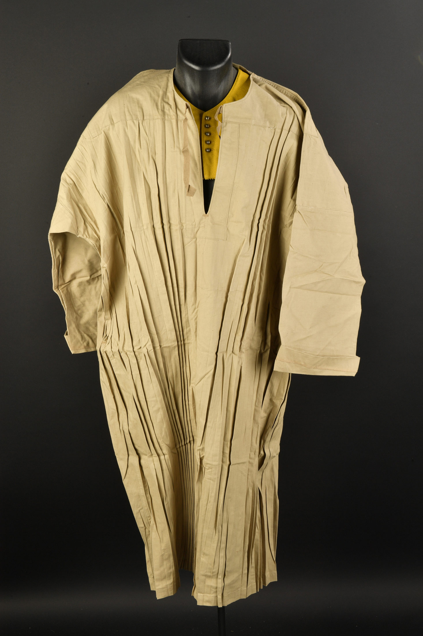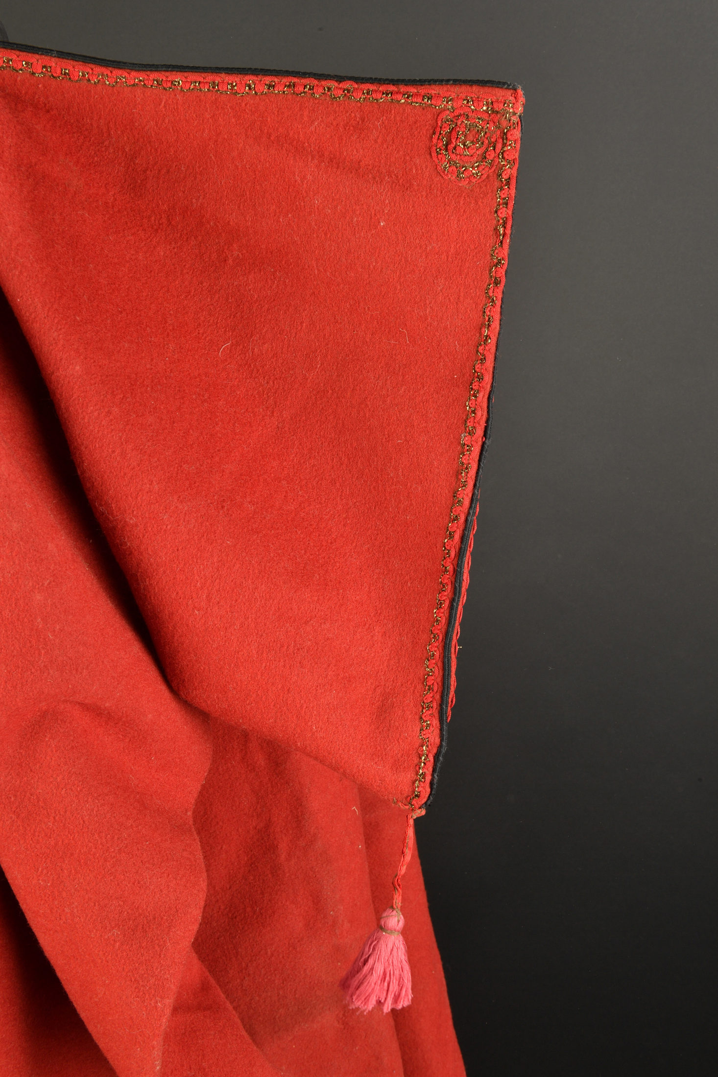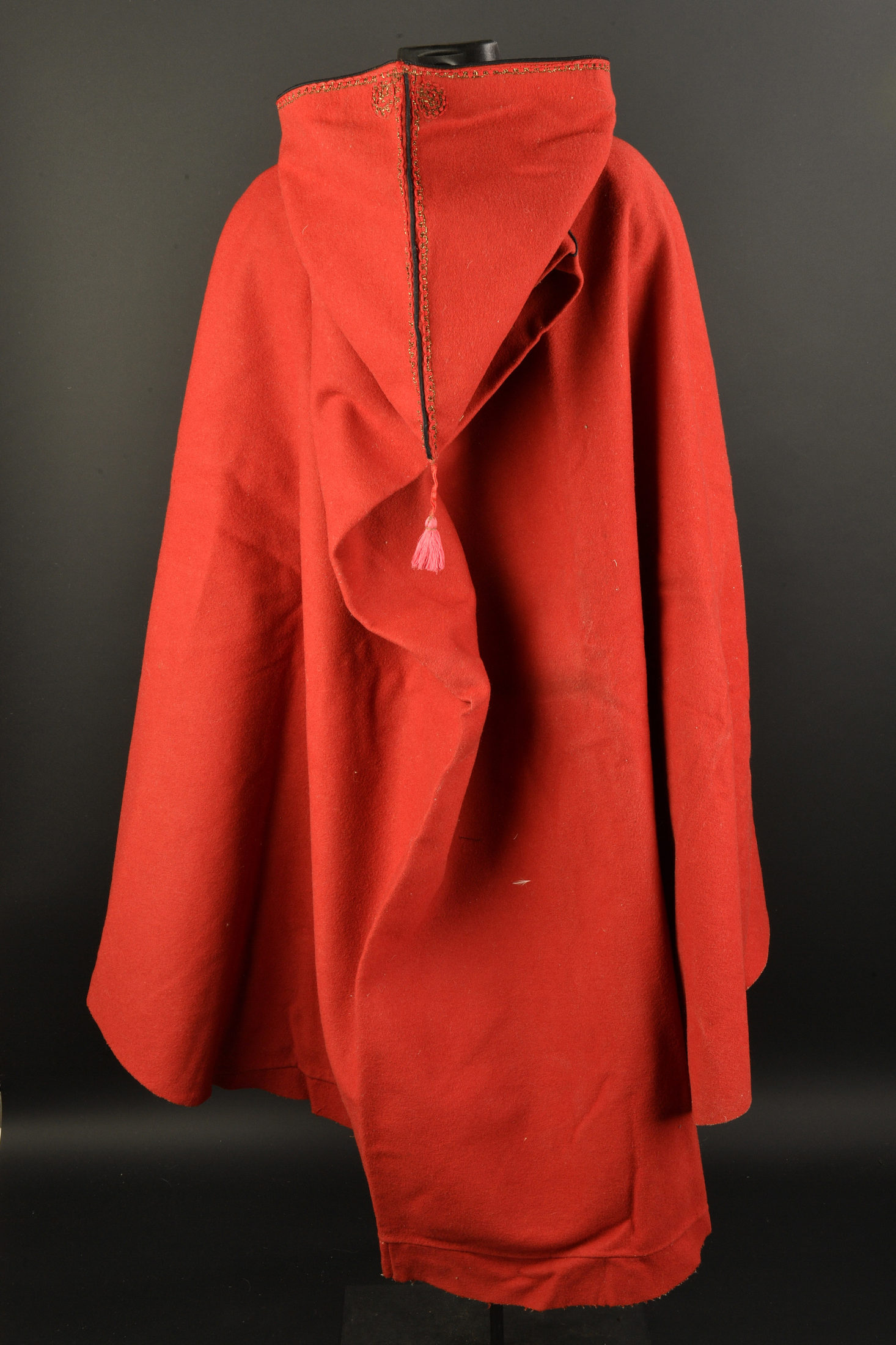 Ensemble Troupes d’Afriques. Ensemble ayant appartenus à André Souplet des Troupes d’Afriques. Comprenant un burnous rouge de spahis de fabrication tailleur orné de décorations réalisées au fil d’or. Bel état. Une gandourah en toile kaki claire fabriquée à Alger en taille 6, état neuf. On y joint un plastron de gilet de spahis en drap jonquille ainsi qu’un ceinturon baudrier d’officier en cuir fauve avec son porte sabre.