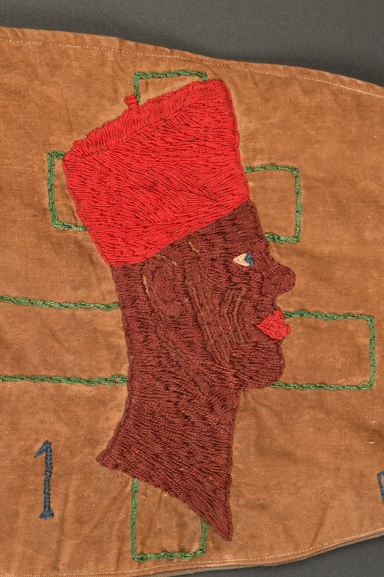 Souvenirs d’un tirailleur sénégalais à Madagascar. Comprenant un fanion de bataillon de tirailleurs sénégalais de renfort, sur une face est représenté un tirailleur brodé en coton... en savoir plus