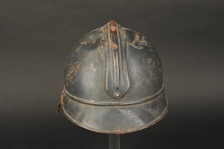 Casque Adrian 1915 infanterie. Casque Adrian modèle 1915, peinture bleu nuit au pinceau recouvrant la peinture d’usine à 90%. Attribut de l’infanterie modèle 1915 en peinture... en savoir plus