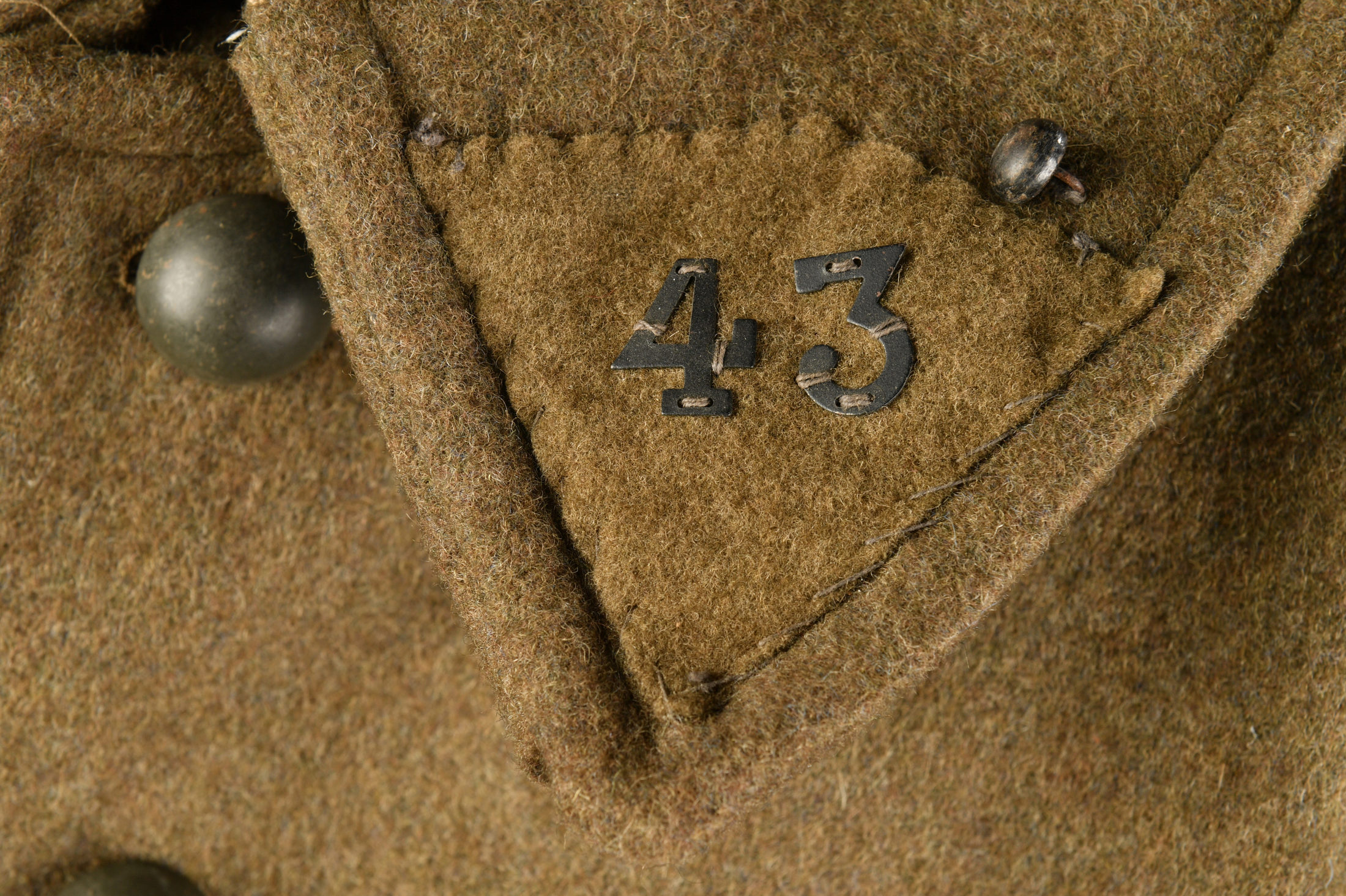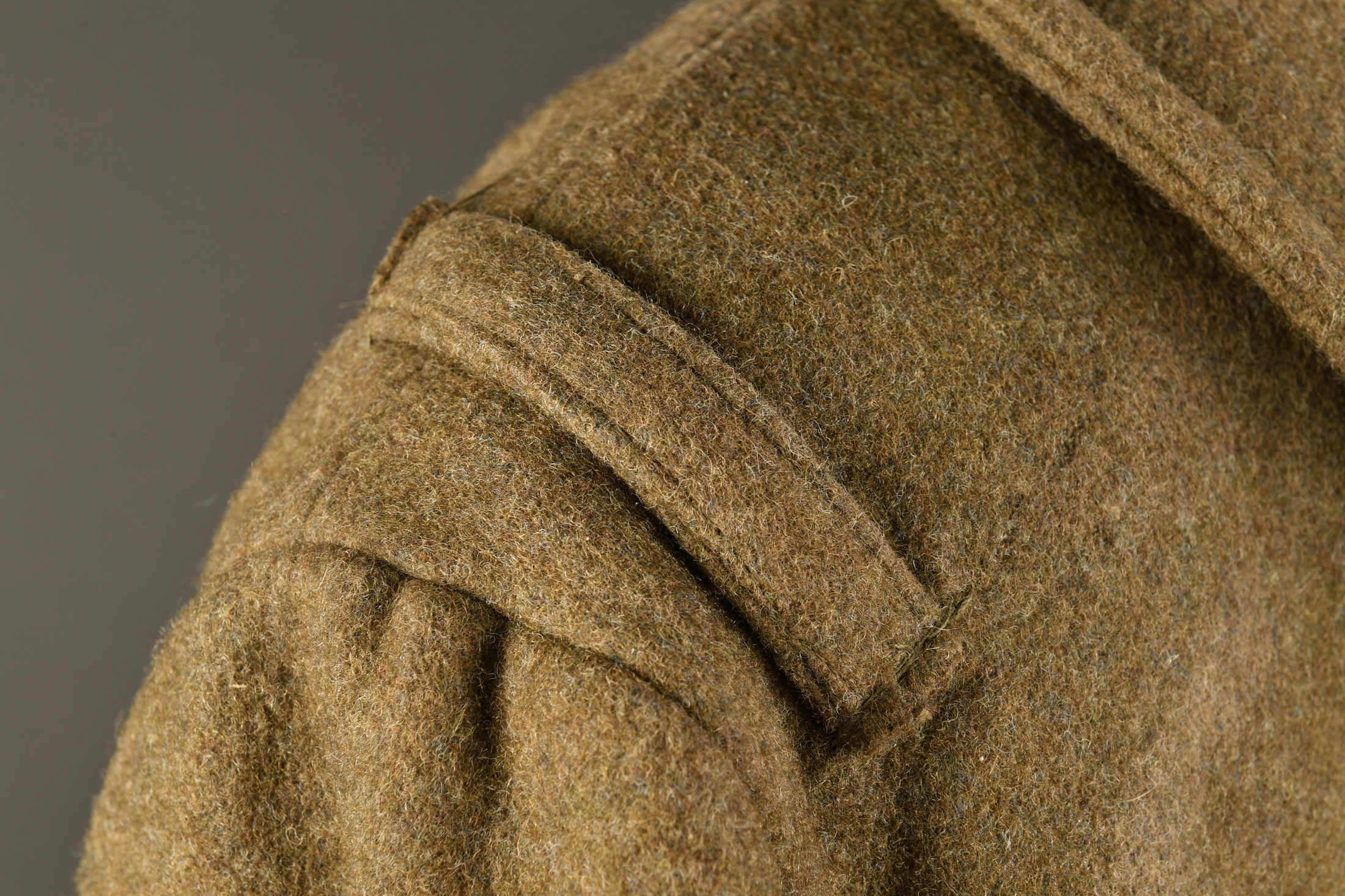 Capote 1938. Capote modèle 1938 confectionnée en drap kaki se fermant par 5 boutons ne peinture d’origine. Doublure en coton écru portant le tampon d’un fabricant à Paris ainsi que... en savoir plus