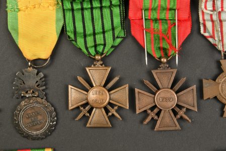 Ensemble de décorations. Comprenant 17 médailles dont une Légion d’Honneur accidentée, médaille 39/40 Vichy, médaille de la résistance, médaille d’Orient, médaille commémorative 1870, médaille des évadés…