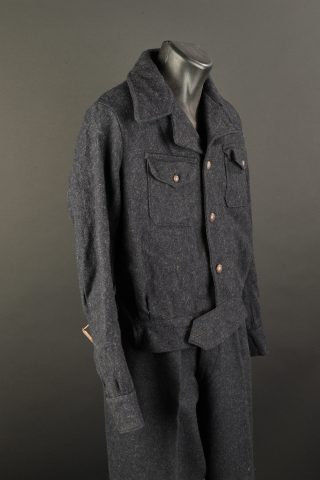 Ensemble d’uniformes Jofta. Comprenant un blouson en drap de laine bleu nuit de Jeune Ouvrier Français Travaillant en Allemagne, renforts internes en coton écru, fermeture par 3 boutons et... en savoir plus