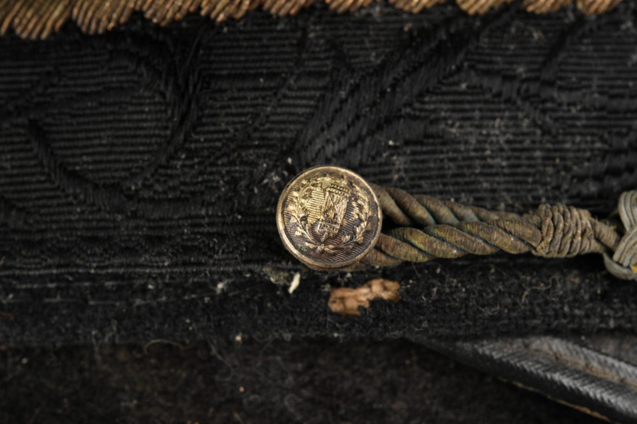 Casquette de Commissaire Vichy. Casquette de commissaire principal de 3ème classe sous Vichy. Confectionnée en drap bleu marine, bandeau noir brodé de feuilles d’acanthes, bordé dans sa... en savoir plus