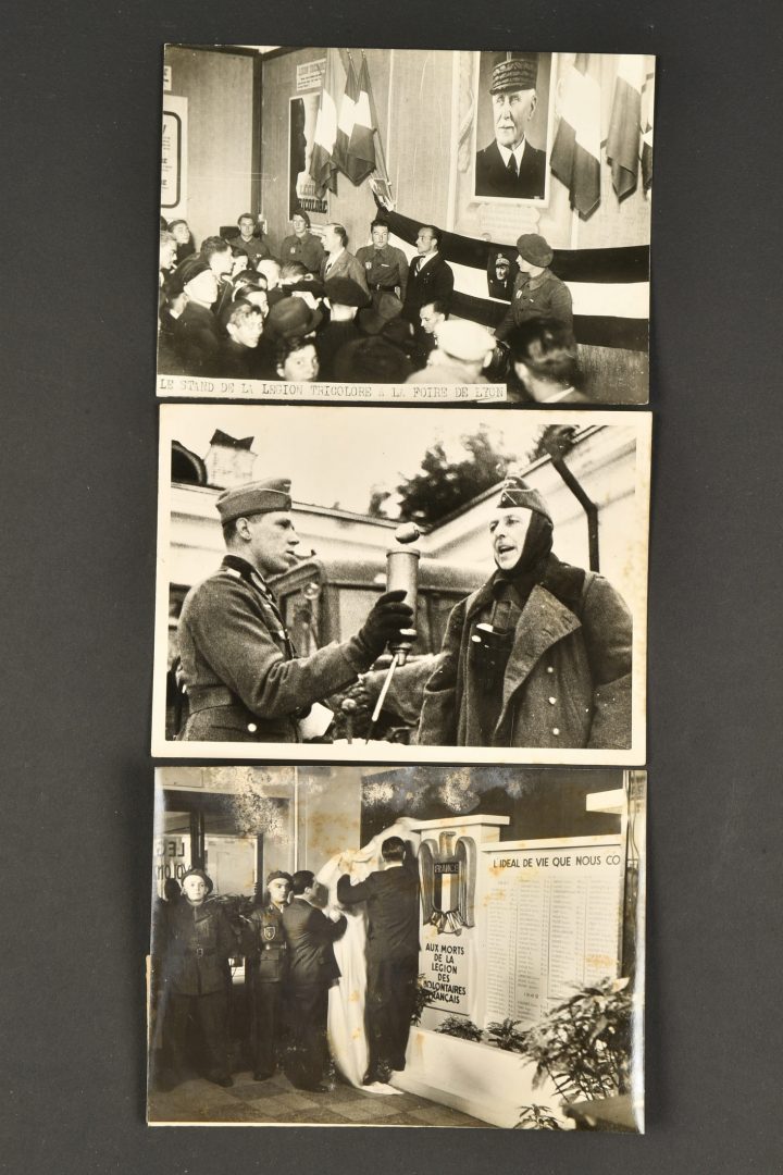 Ensemble de photos de presse LVF. Comprenant 3 photos de presse de la LVF, Format 18x13cm. Discours du commandant de la LVF, inauguration du monument aux morts de la LVF, stand de la Légion... en savoir plus