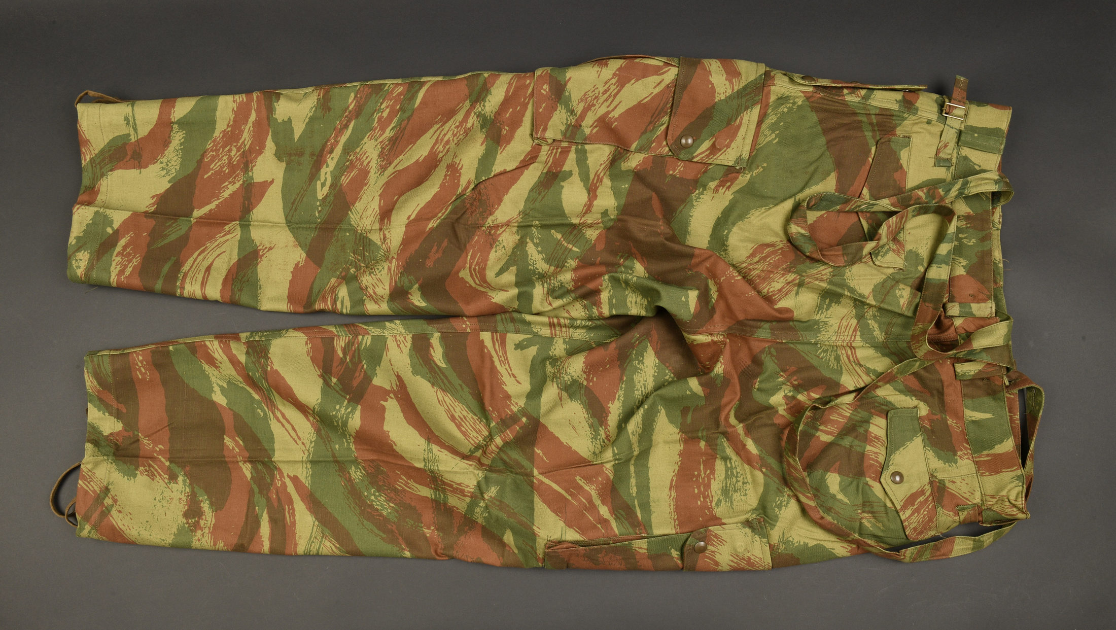 Pantalon TAP 47/56. Pantalon fabriqué entièrement en tissu camouflé 47/54, tampon de fabricant présent au niveau de la taille, taille 27. Tous les boutons sont cousus d’origine, pattes... en savoir plus