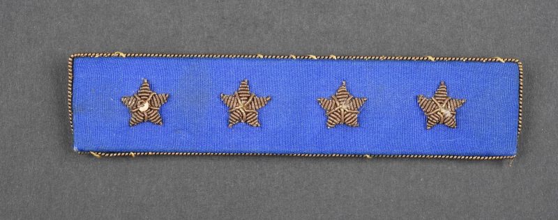 Barrette de Commissaire et Chef d’Ecole des Cadres. Quatre étoiles brodées cannetille sur tissu bleu, deux agrafes à l’arrière. Provenance collection Christian Cournol.