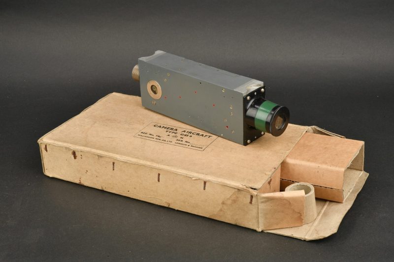 Camera Aircraft G45B. Boite en carton, abîmée avec des manques. Marquages Camera Aircraft Type G45b. AM sous couronne. Référence 14A/33603, numéro de série 40465, fabrication Williamson MFG... en savoir plus