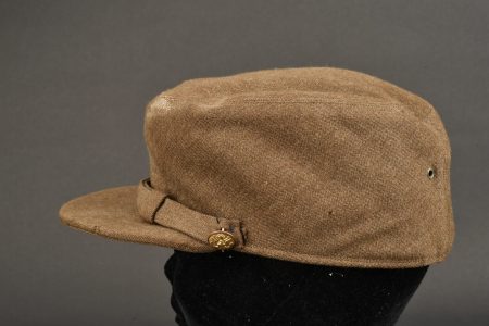 Casquette WAAC. En forte toile kaki. La fausse jugulaire est présente. Visière complète sans marques de pliures. Intérieur doublé en satinette grise. Bandeau de transpiration en toile.... en savoir plus