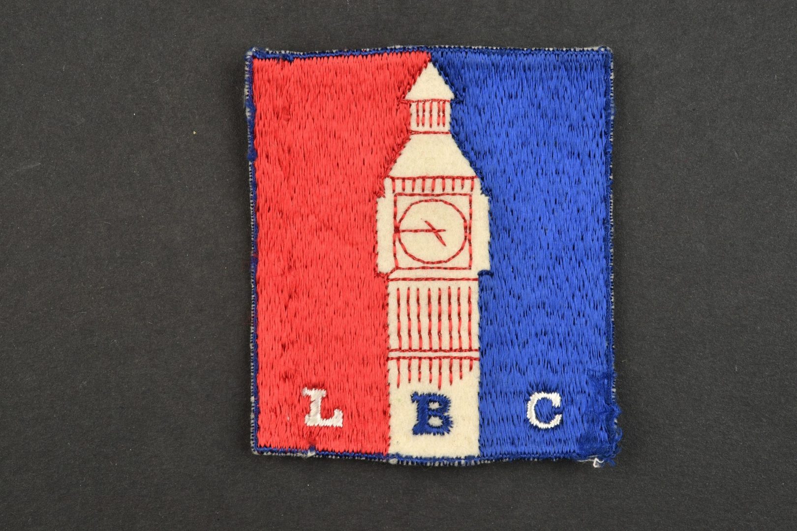 Insigne London Base Command. En tissu bien marqué LBC pour London Base Command. A noter une légère usure de la pièce. Etat II+. Plus de photos sur www.aiolfi.com. More photos on www.aiolfi.com.