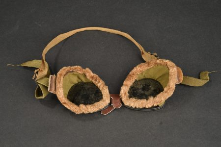 Lunette de montagne US. Armature en métal, et tissu kaki. Doublure en fausse fourrure. Verres fumés. Elastique présent mais distendu, et quelques peu déchiré. A noter une certaine usure et... en savoir plus