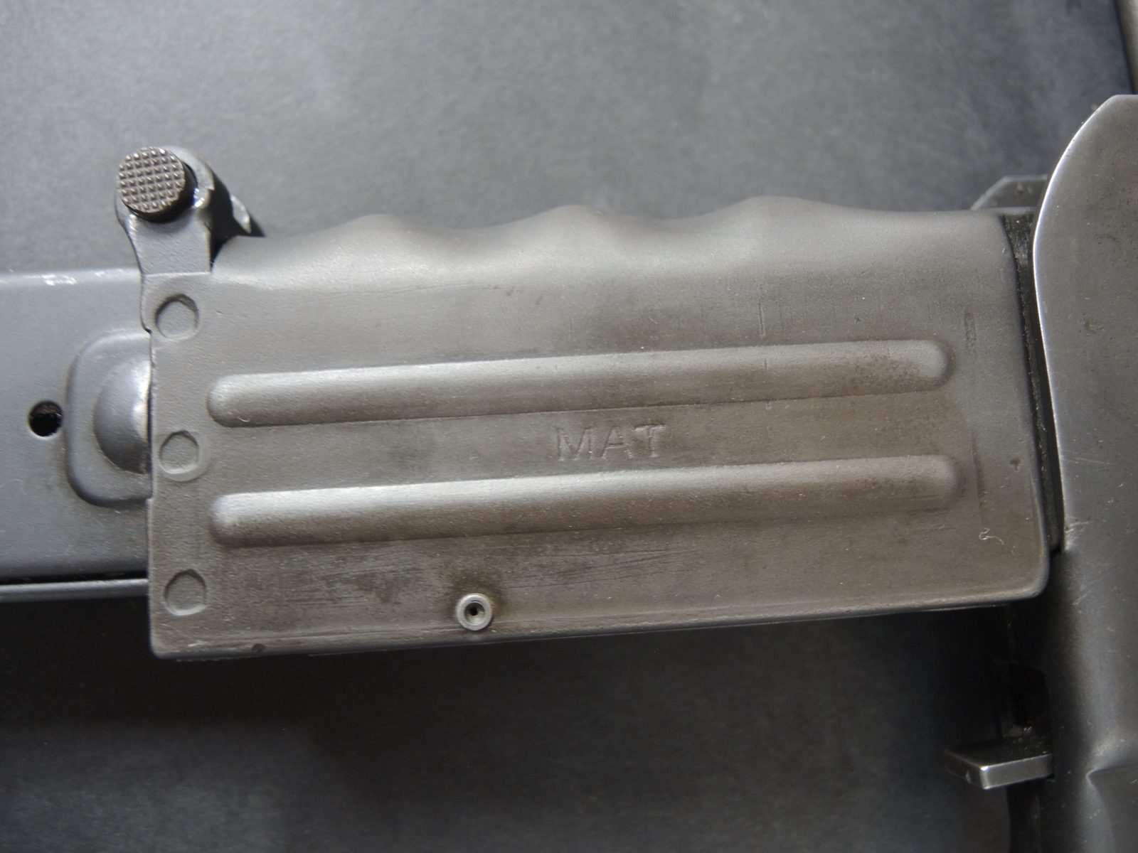 Phosphatage à 90%, plaquettes en bakélite, crosse rétractable fonctionnelle, chargeur présent. Marquage MAT MAC fabrication Manufacture nationale d’armes de Châtellerault, numéro... en savoir plus