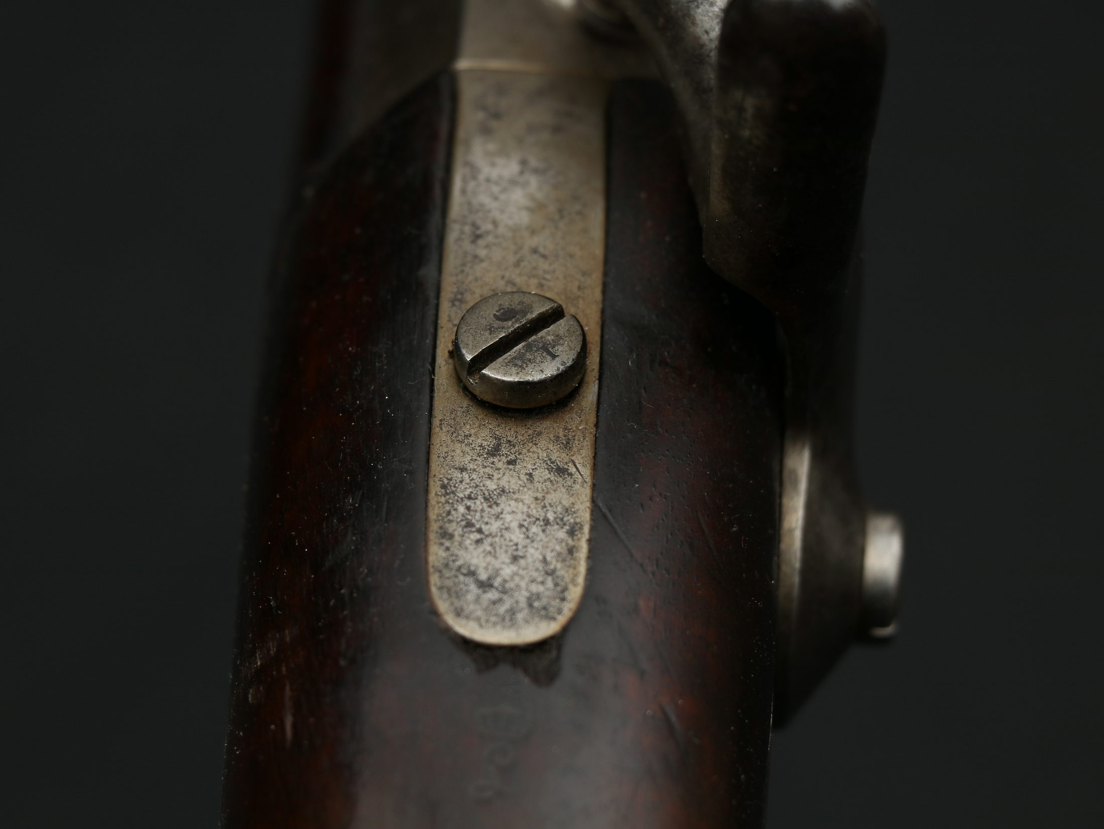 Fusil de rempart allégé Mle 1840. Manufacture Royale de Chatellerault. Calibre 18mm. Belles marques profondes. Très bonne condition. fonctionne très bien. Ce modèle a également été utilisé pendant la guerre de Crimée. Très rare. A noter une certaine usure et patine de la pièce. Etat II+. Plus de photos sur www.aiolfi.com. More photos on www.aiolfi.com. Lors de l’achat, il faudra présenter une copie de la CNI, ainsi qu’un justificatif de domicile de moins de 3 mois.