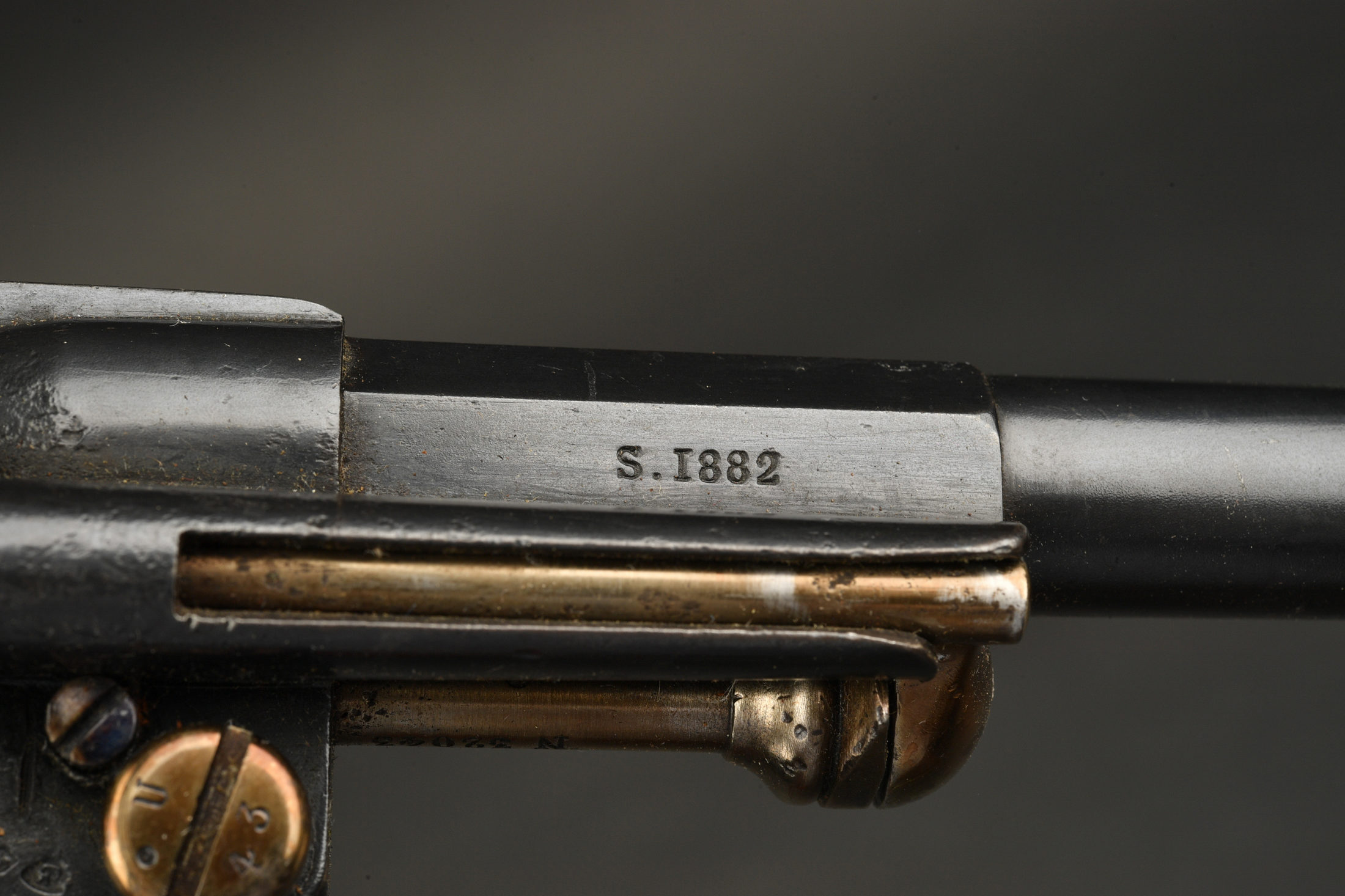 Revolver 1874. Revolver modèle 1874 fabriqué par la Manufacture d’Armes de Saint Etienne en 1882. Arme présentant quelques piqures et entièrement rebronzée. Poinçon de contrôle et... en savoir plus