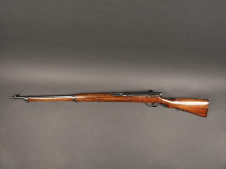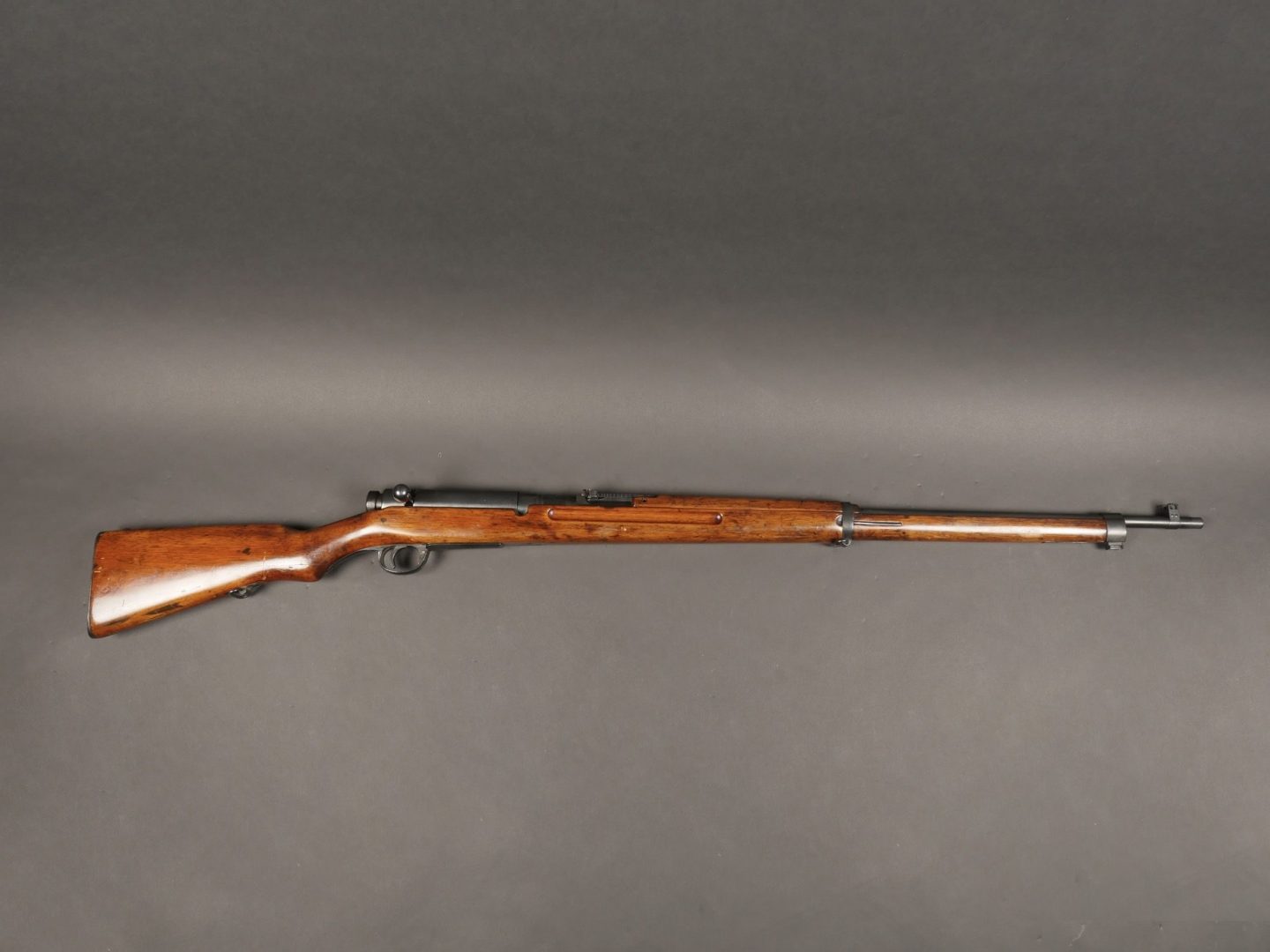 Fusil Arisaka. Numéro 29875. Modèle 38, calibre 6,5×57. Belle croisse en bois vernis présentant quelques marques d’usures. Bronzage à 95%. Canon propre, belle rayures. A noter une... en savoir plus