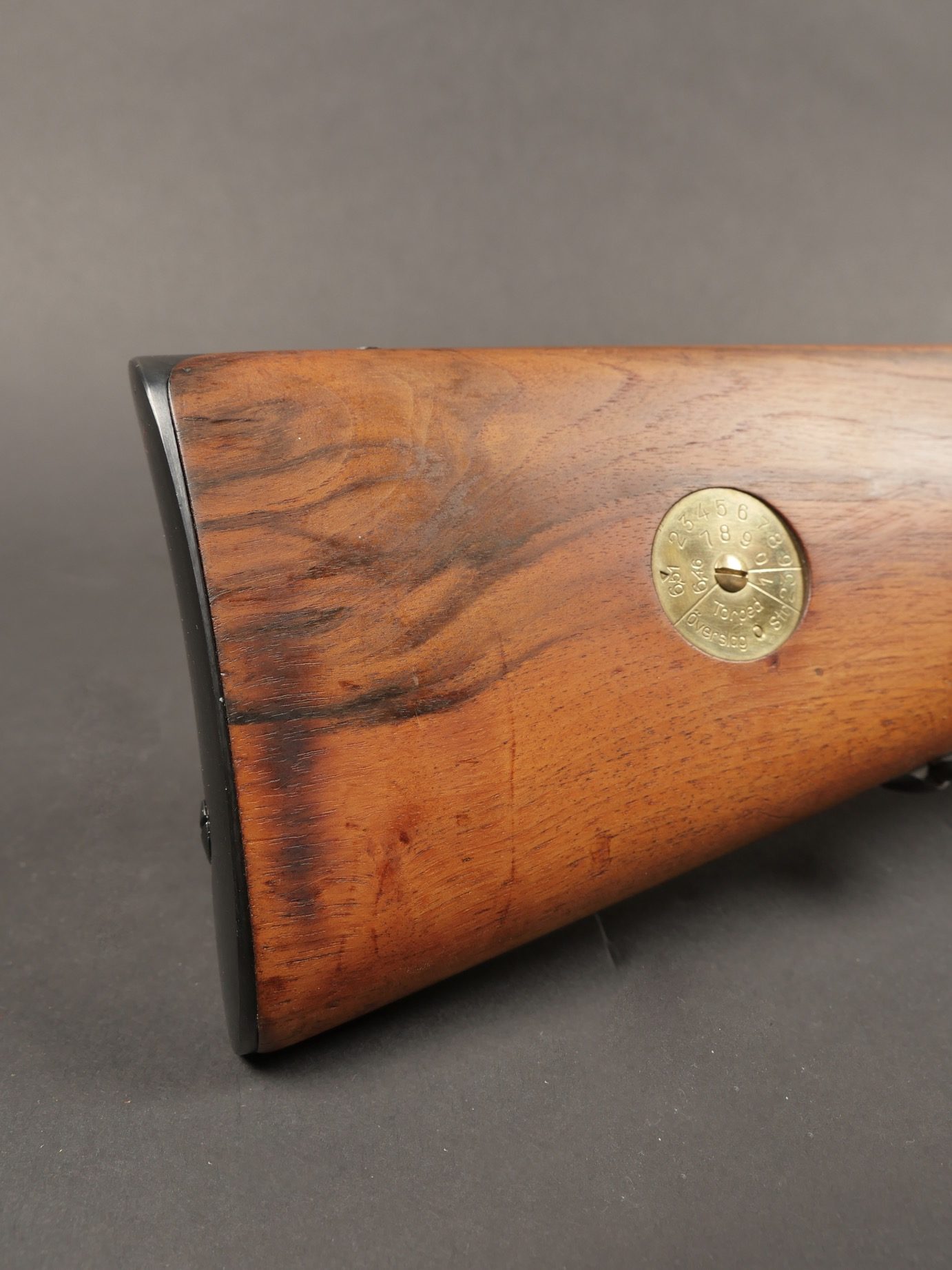 Fusil Mauser Suédois. Numéro 214718, modèle 1896 Suédois. Calibre 6,5 x 57. Fabrication Carl Gustafs 1908. Rebronzé. Quelques marques d’oxydation visible. Baguette de nettoyage... en savoir plus