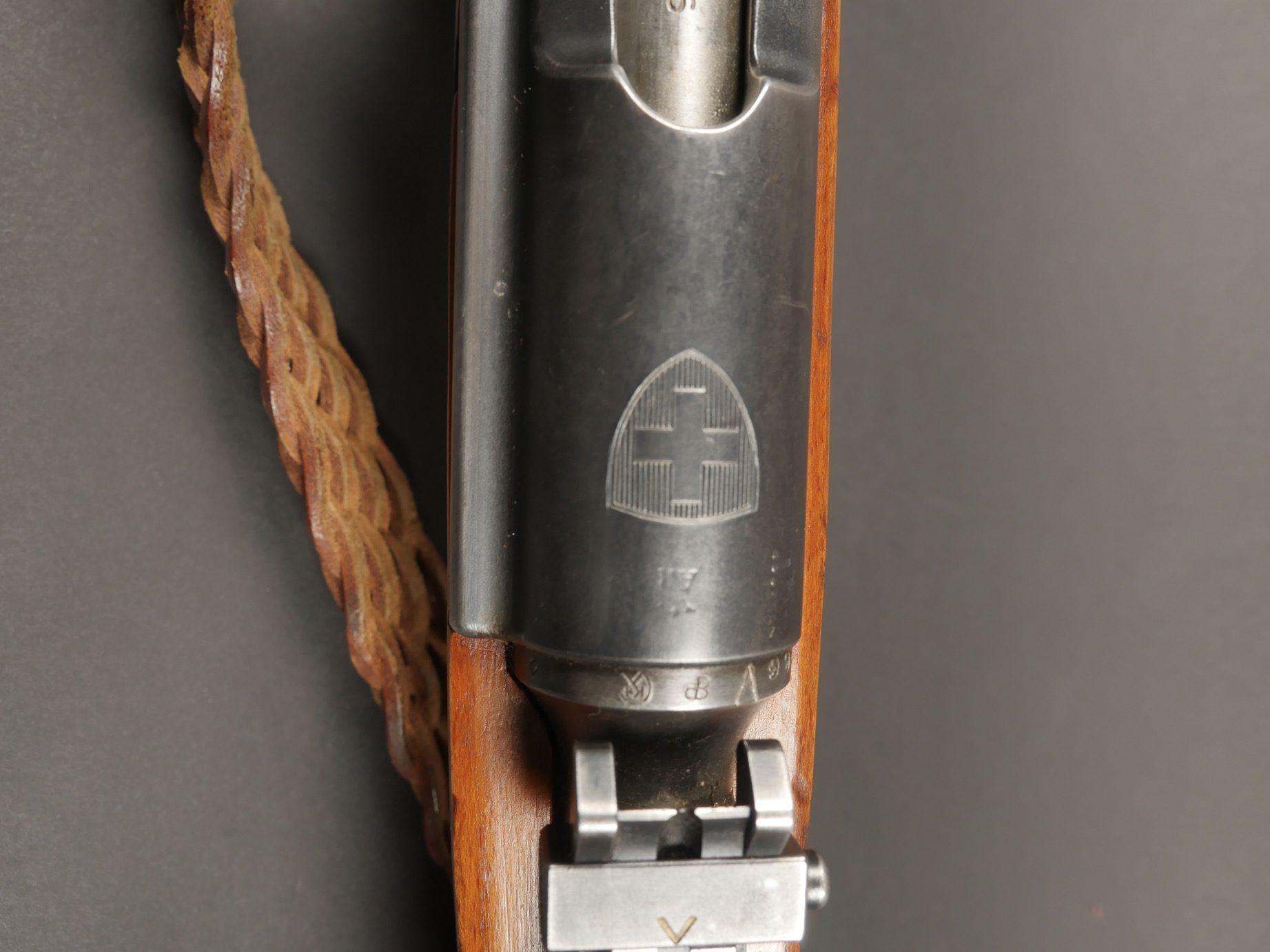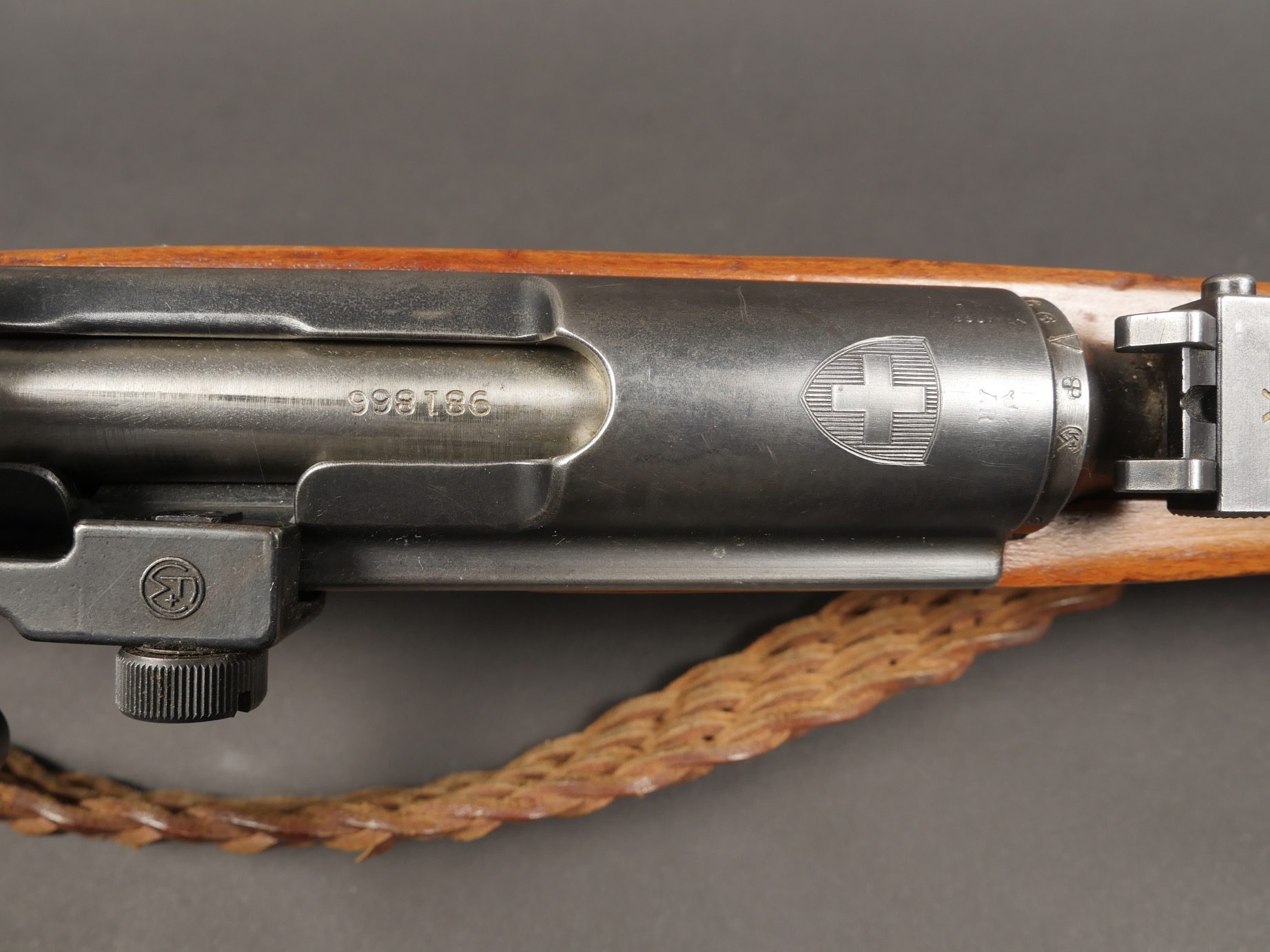 Fusil Schmidt Rubin. Numéro 981866. Modèle K31. Calibre 30-284 Winchester. Belle crosse en bois. Hausse de précisions complète. Bretelle en cuir tressée. Canon propre, belle rayures.... en savoir plus