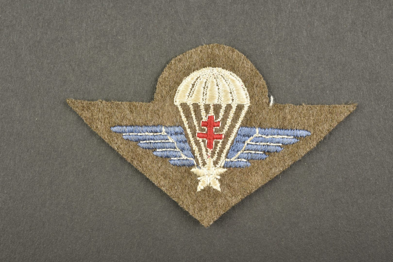 Brevet commando de France. Brevet d’époque seconde guerre brodé en fil de coton tricolore sur drap kaki. Traces de col au revers.