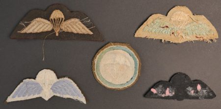 Ensemble d’insignes airborne britannique. Comprenant dix brevets parachutiste brodés. Un title Parachute brodé en fil bleu sur fond en drap bordeaux. Un title Parachute Regiment. Deux... en savoir plus