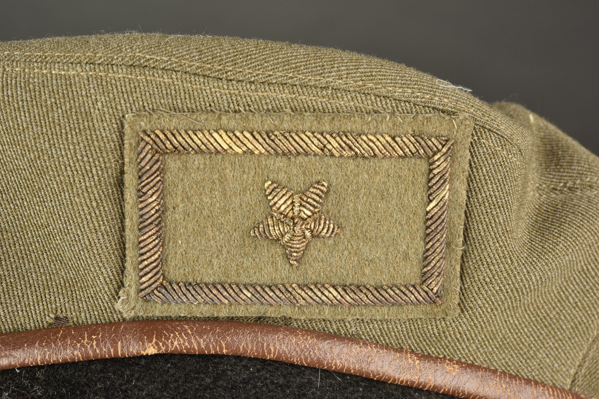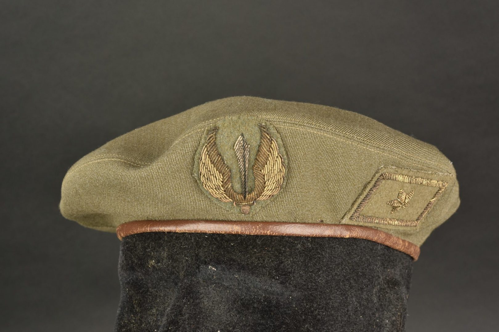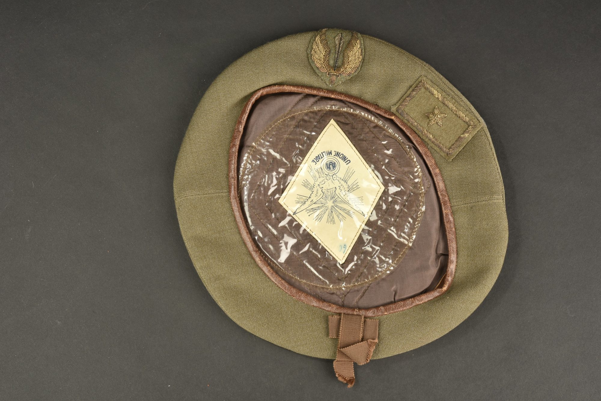 Béret de parachutiste italien. En gabardine grigio verde. Insigne de parachutiste italien en cannetille. Grade de sous-officier en cannetille. Bordure du béret en cuir marron. Intérieur doublé... en savoir plus
