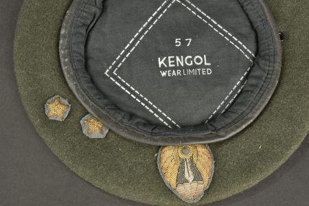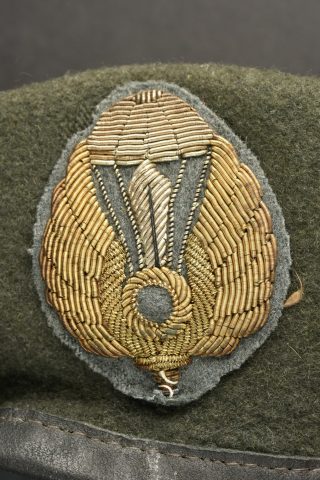 Bérets de parachutiste italien. Comprenant un béret en drap de laine grigio verde. Insigne de parachutiste en cannetille. Grade de Tenente en cannetille. Bordure du béret en cuir noir.... en savoir plus