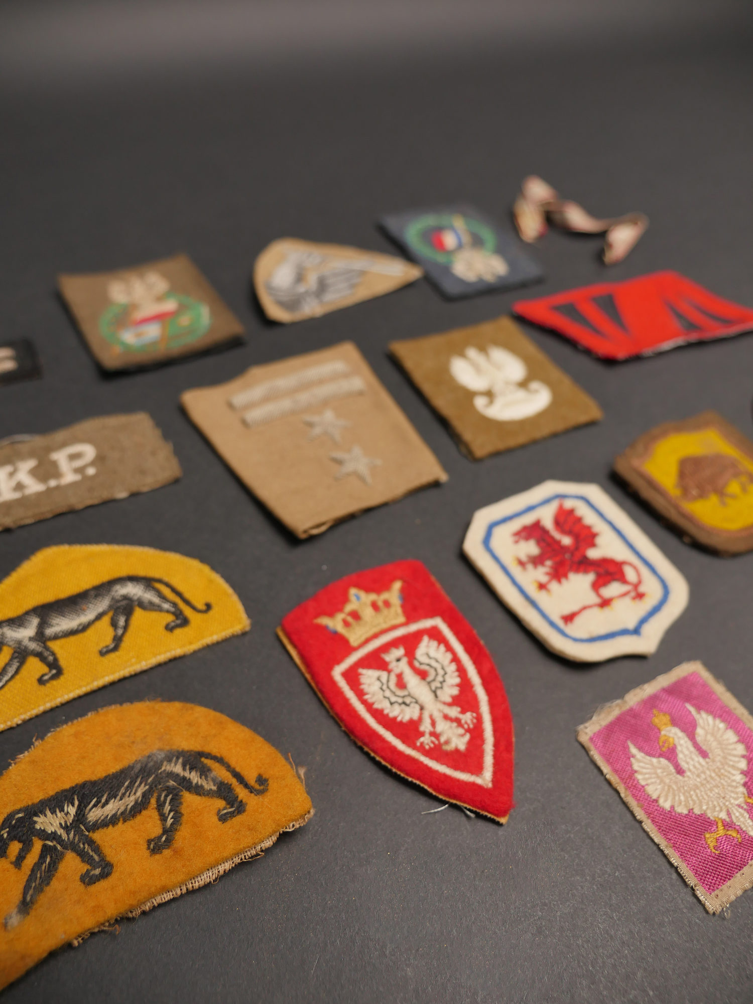 Insignes polonais. Comprenant un insigne imprimé de la 14th Wielkopolski Independent Armoured Brigade. Un insigne brodé de la 14th Wielkopolski Independent Armoured Brigade. Un patch de la 7th.... en savoir plus