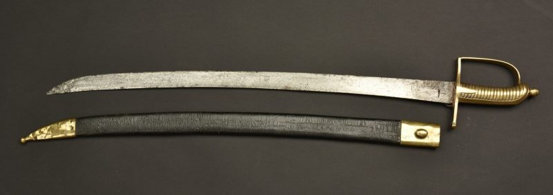 Sabre briquet d’infanterie modèle 1767 Sabre à monture laiton moulée, poignée striée, demi oreillons, arc de jointure simple à angle droit, croisière à quillon avec bouton terminal.... en savoir plus