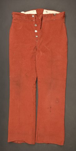Lot de 2 pantalons troupe modèle 1867 tamponnés Commis et Ouvriers d’Administration militaire. Pantalons en drap garance, tous deux datés 1887. Un de très petite taille, réceptionné à... en savoir plus