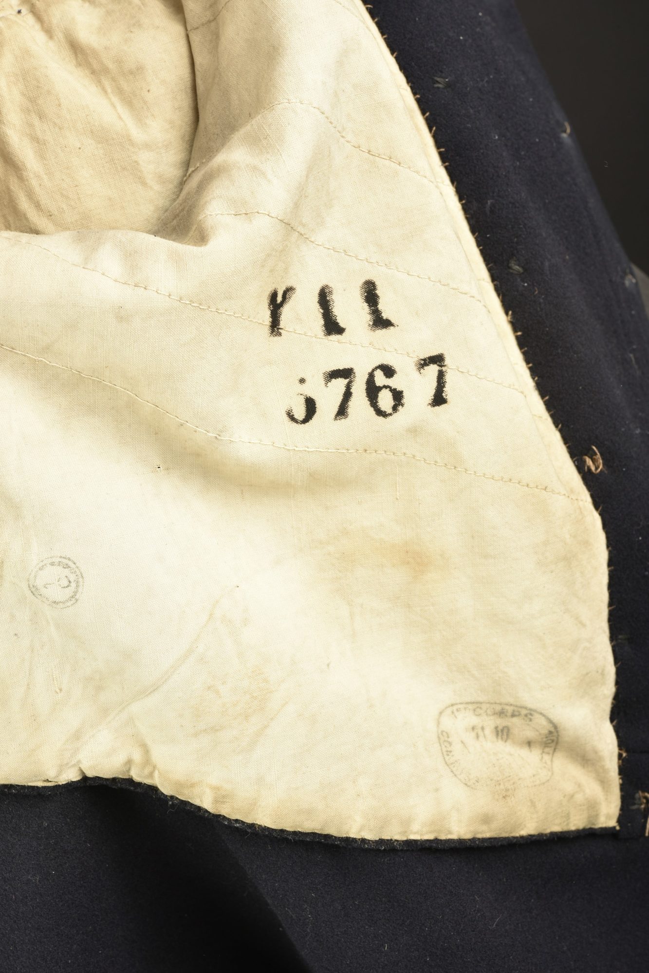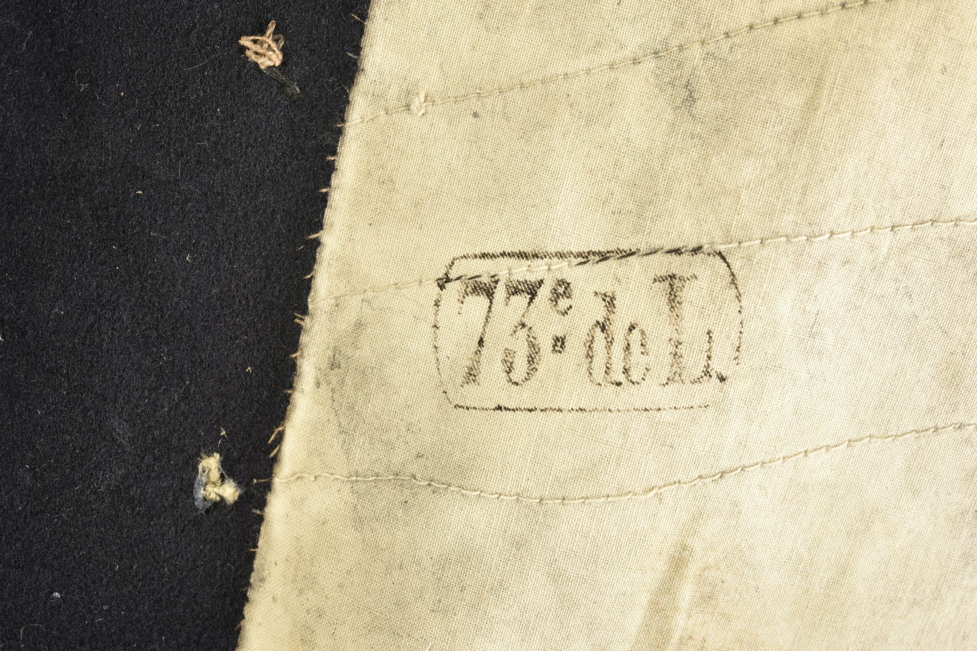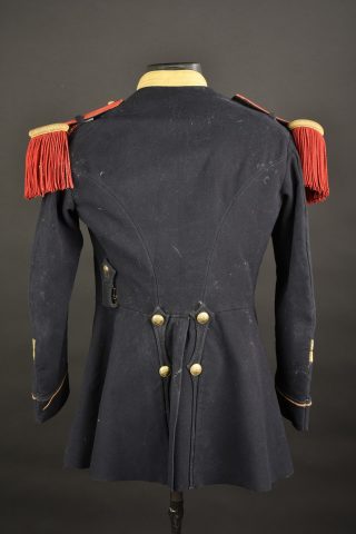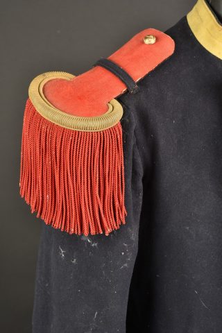 Tunique d’infanterie 1872. Confectionne en drap bleu nuit, col jonquille, pattes de col troupe mais portant des chiffres métalliques. La tunique se ferme à l’aide de deux rangées de... en savoir plus