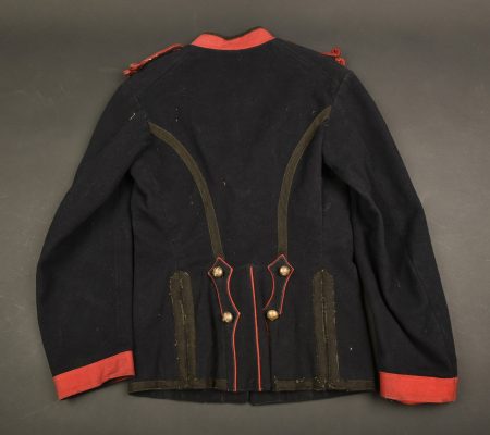Dolman troupe modèle 1872 d’artilleur. Dolman troupe modèle 1872 du 29e régiment d’Artillerie. En drap bleu foncé fermant par 7 brandebourgs et 3 rangées de boutons de l’arme.... en savoir plus