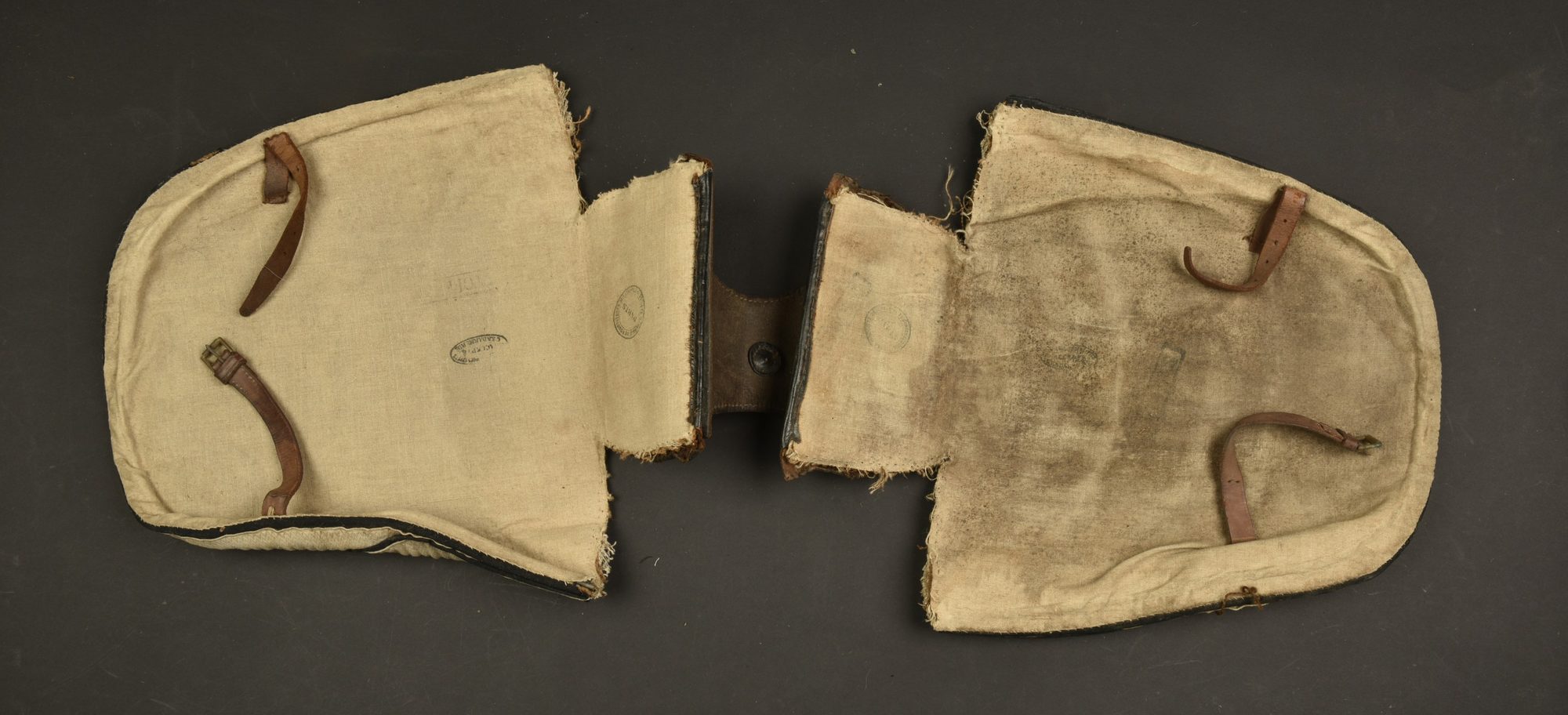 Lot Gendarmerie à Cheval IIIe République. Une culotte en fort drap blanc, une culotte en drap bleu, jambes garnies d’une bande noire. Un tapis de selle bleu foncé bordé d’un large... en savoir plus