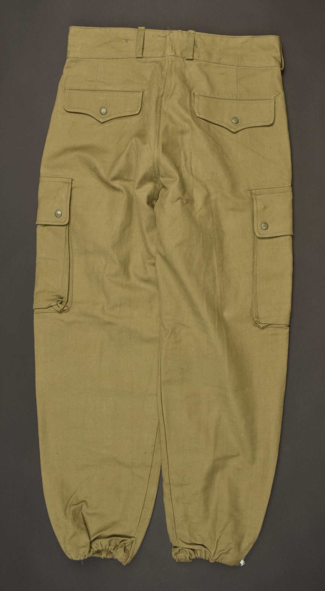 Pantalon TAP 47. Confectionné en toile kaki, pression en peinture fonctionnelles, fermeture éclaire de marque Eclair. Tampon du fabricant Perret à Lyon ainsi que le tampon de taille 23, cachet... en savoir plus