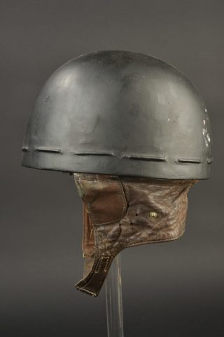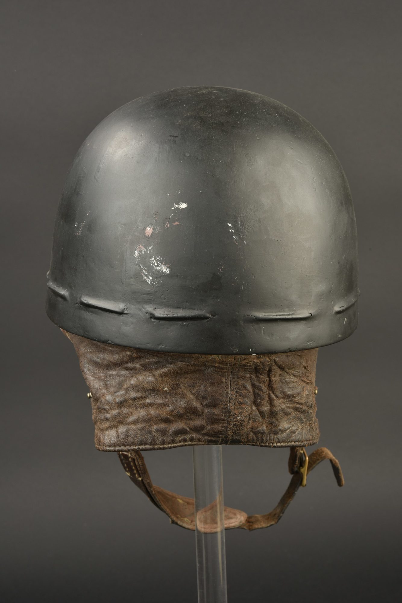 Casque de dispatch rider. En fibre. Peinture noire à 80%. Probablement postérieure. Coiffe complète mais fortement usée. Cordon de serrage complet. Fabrication CCL 1942, taille 7 1/8.... en savoir plus