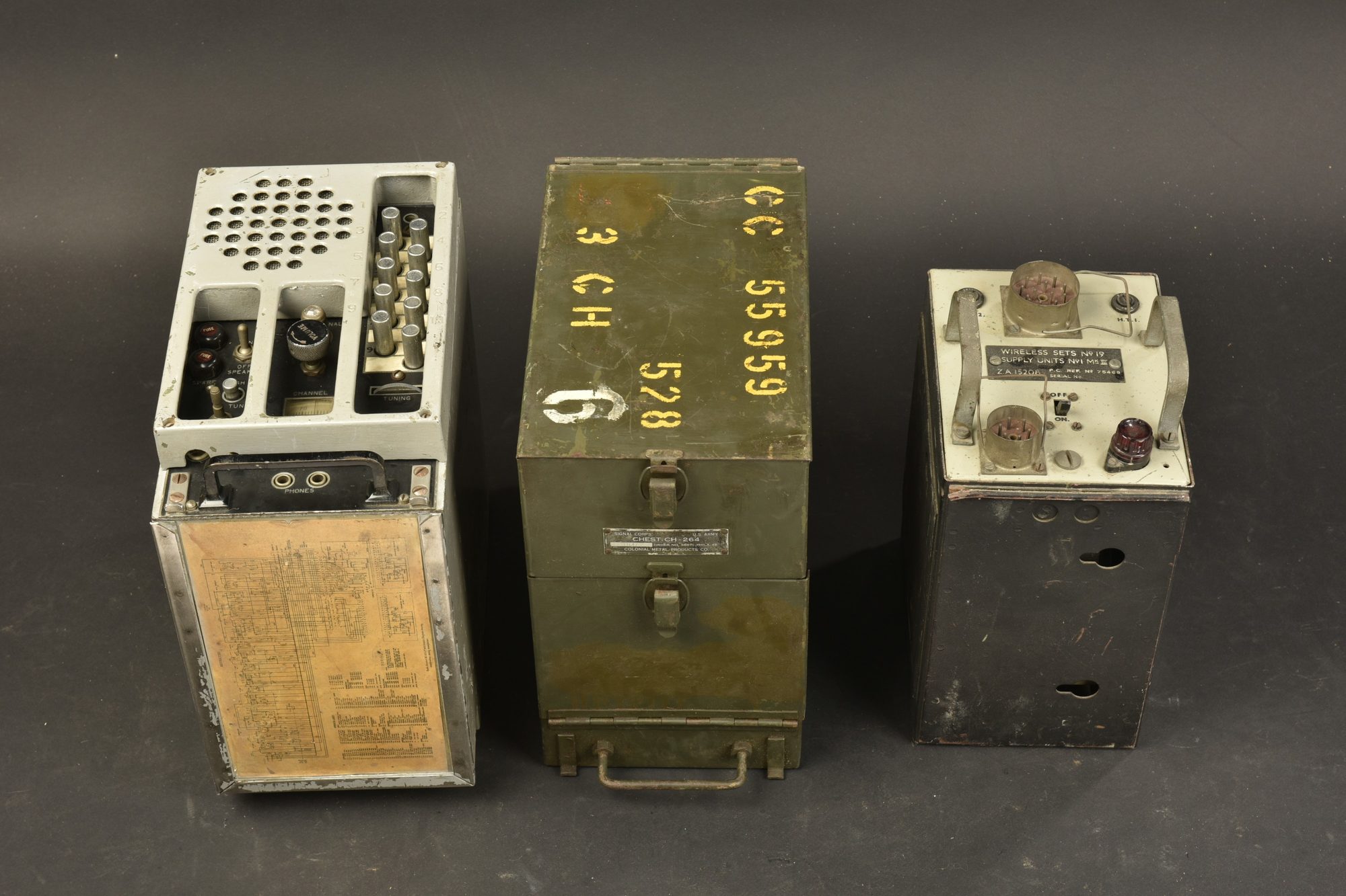 Radio et divers. Comprenant un caisson en métal avec sa poignée de transport, toutes les pièces mobiles sont fonctionnelles. Un caisson en métal, peinture kaki à 70%, les poignées de... en savoir plus