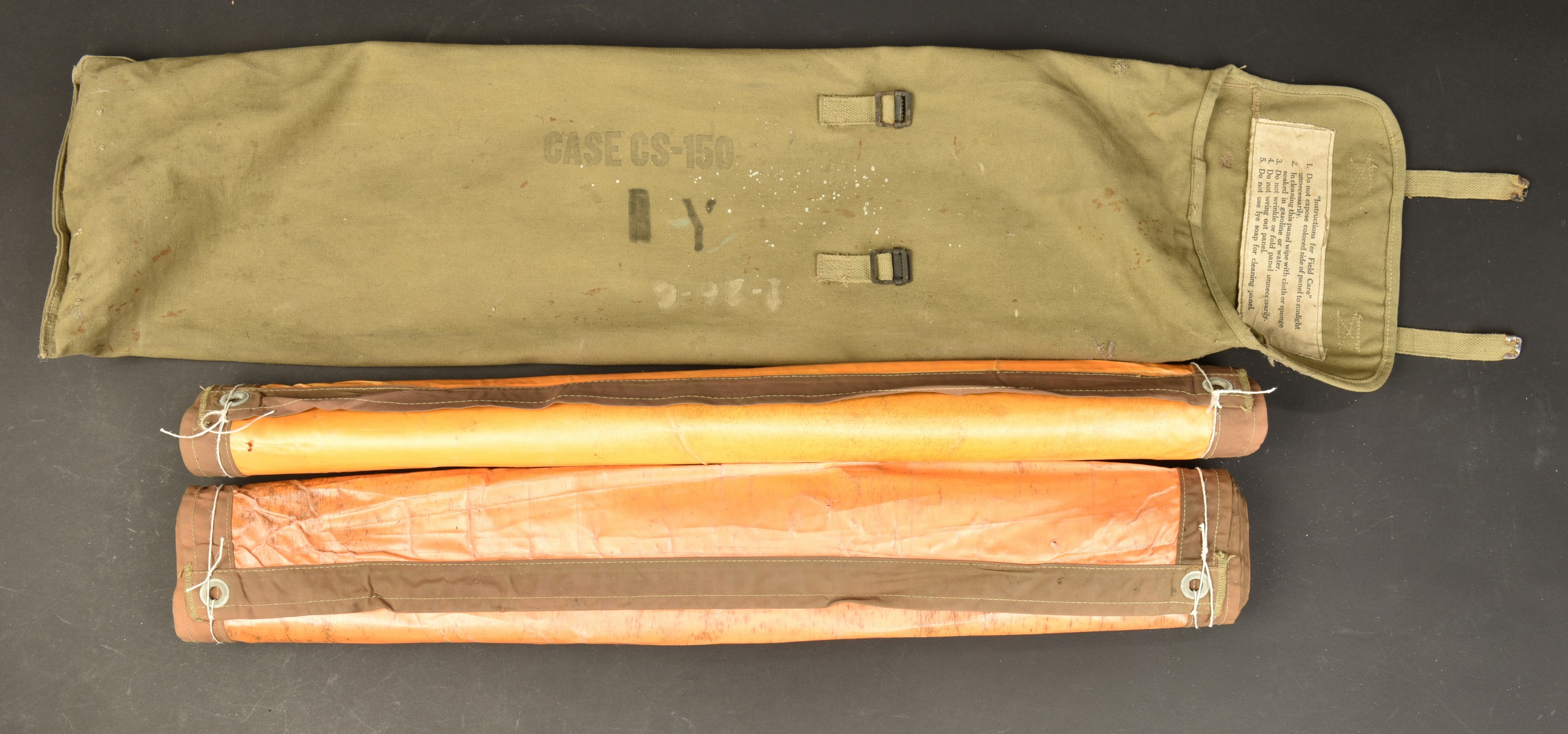 Case CS-150. Housse en forte toile OD, toutes les sangles sont présentes. Marquages Case CS-150 IY 1-26-C. Notice présente sous le rabat. Contenant deux drapeaux en tissu imperméabilisé rouge.... en savoir plus