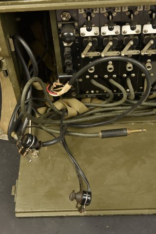 Switchboard BD-72. Caisse en bois et métal. Peinture kaki à 70%. Sangle de transport présente. Les pieds télescopique sont présents et fonctionnels. Un crochet de fermeture n’est pas... en savoir plus