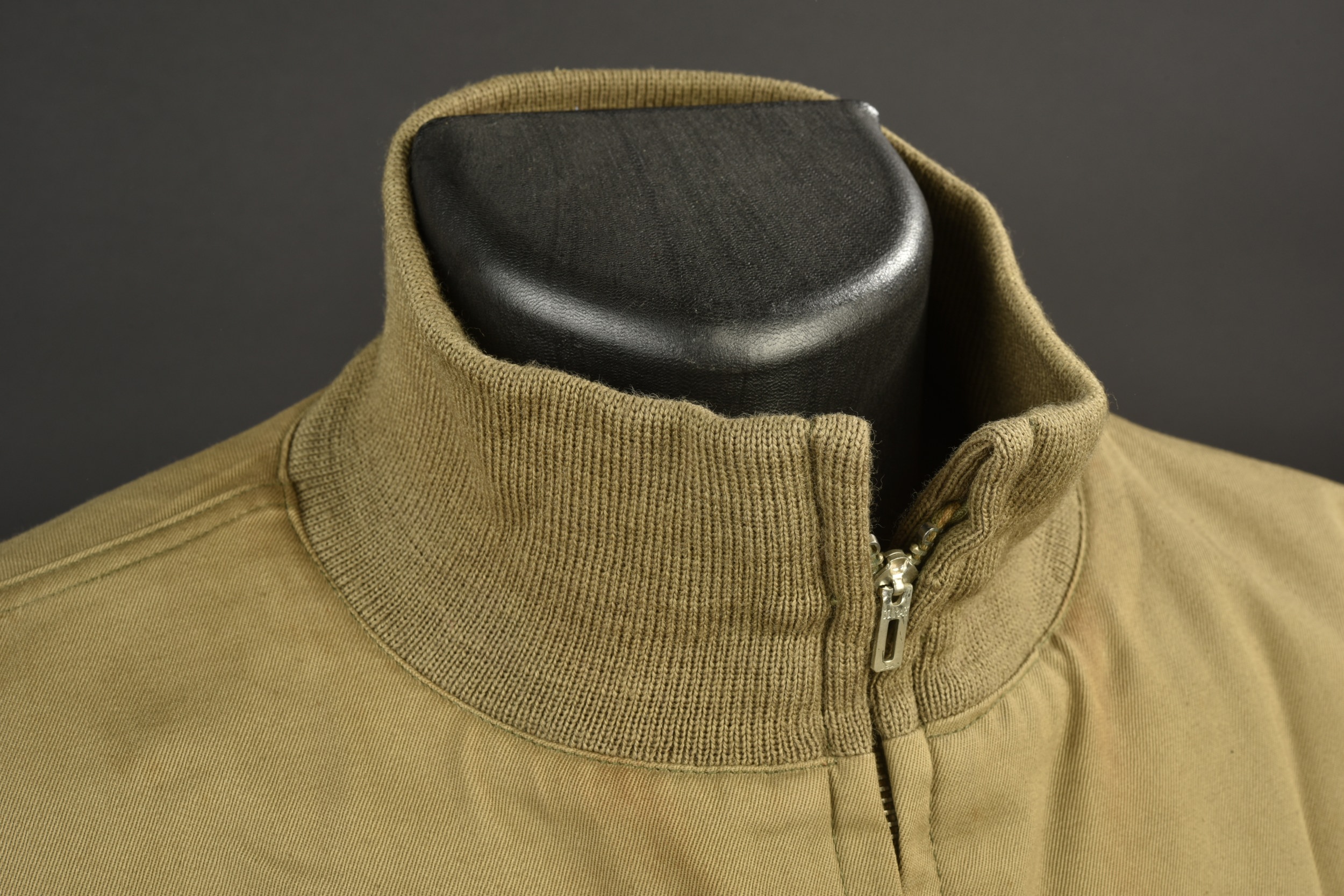Blouson de tankiste US. En épais tissu kaki. Les feutrines sont en très bon état. Quelques traces de mite visibles. Intérieur doublé en drap kaki. Fermeture éclaire fonctionnelle,... en savoir plus