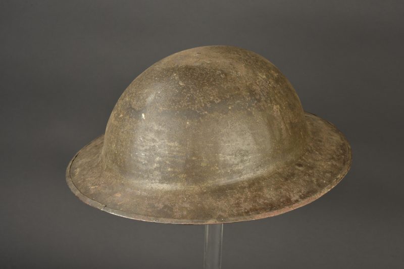 Casque anglais Mark I. Modèle Mark I avec jonc peinture à 50%, marquage FS 140 dans la nuquière. Intérieur en toile cirée présent, tampon en fibre incomplet. Jugulaire en cuir présente... en savoir plus
