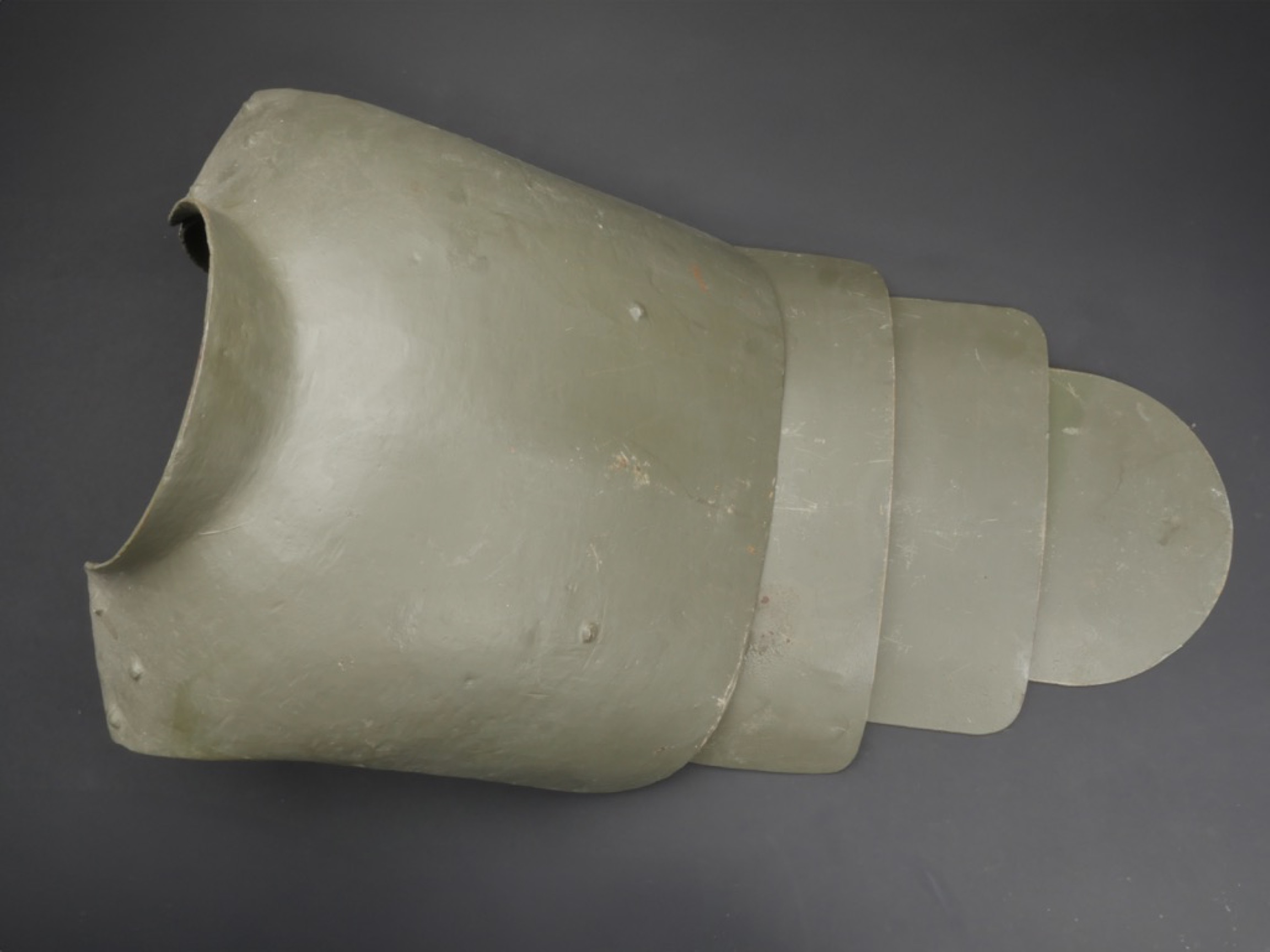 Cuirasse de guetteur allemand w1 SappenPanzer. Cuirasse de guetteur Sappenpanzer 1er type. Bon plastron de fouille, restauré et repeint feldgrau, complété par des reproductions des éléments... en savoir plus