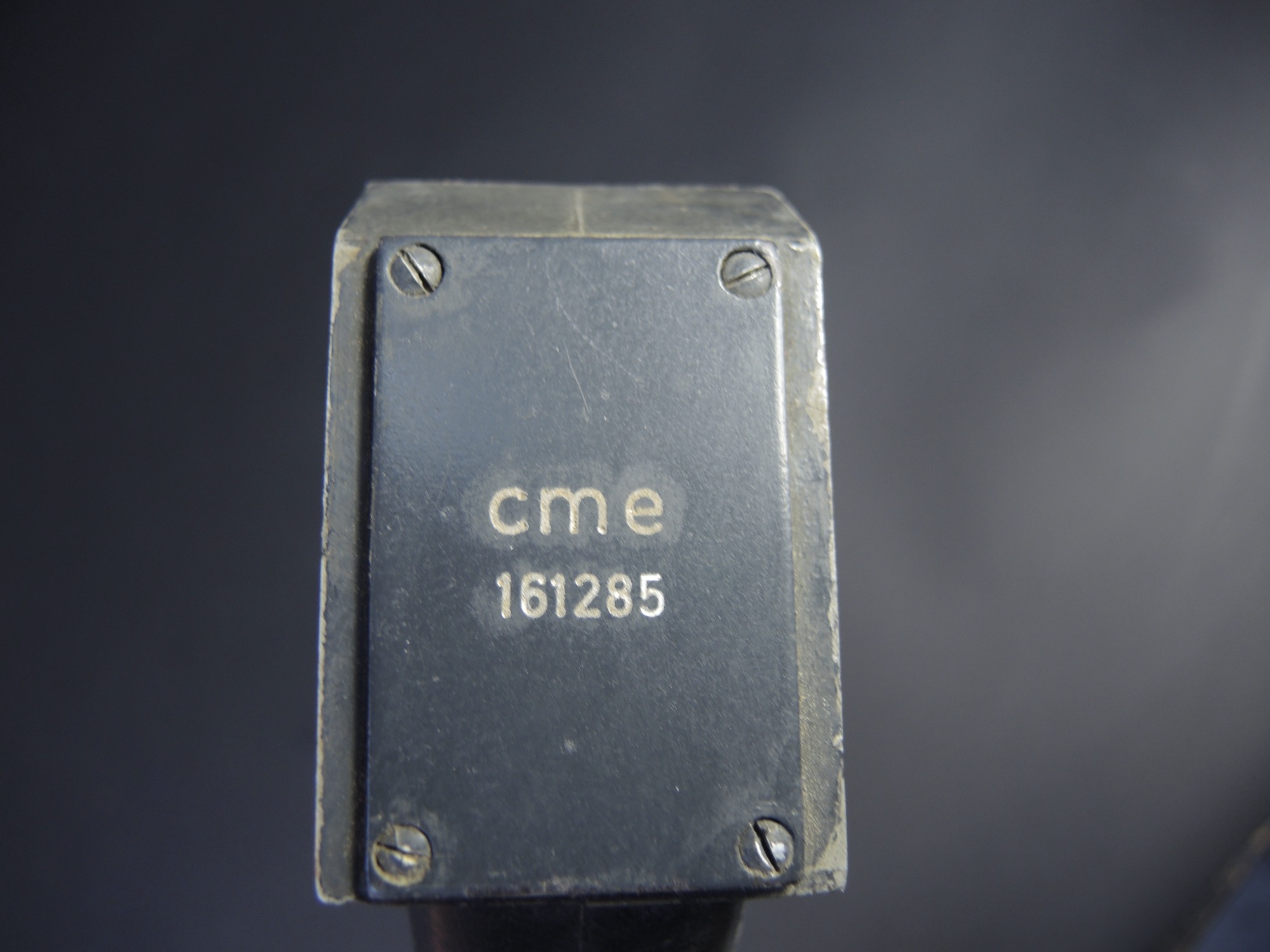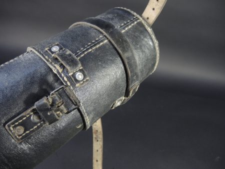 Richtkreis 40 allemand sur trépied. Destiné à l’artillerie, l’optique conserve plus de 80% de sa peinture d’usine, code fabricant cme numéro de série 170295 et 161285. Fixé à son trépied en métal, en peinture verte, reste de sangle de fixation en cuir. L’ensemble est contenu dans son container de transport en carton pressé noir, une des sangles est marquée du fabricant jsv 1942. Bel ensemble homogène. Etat II+