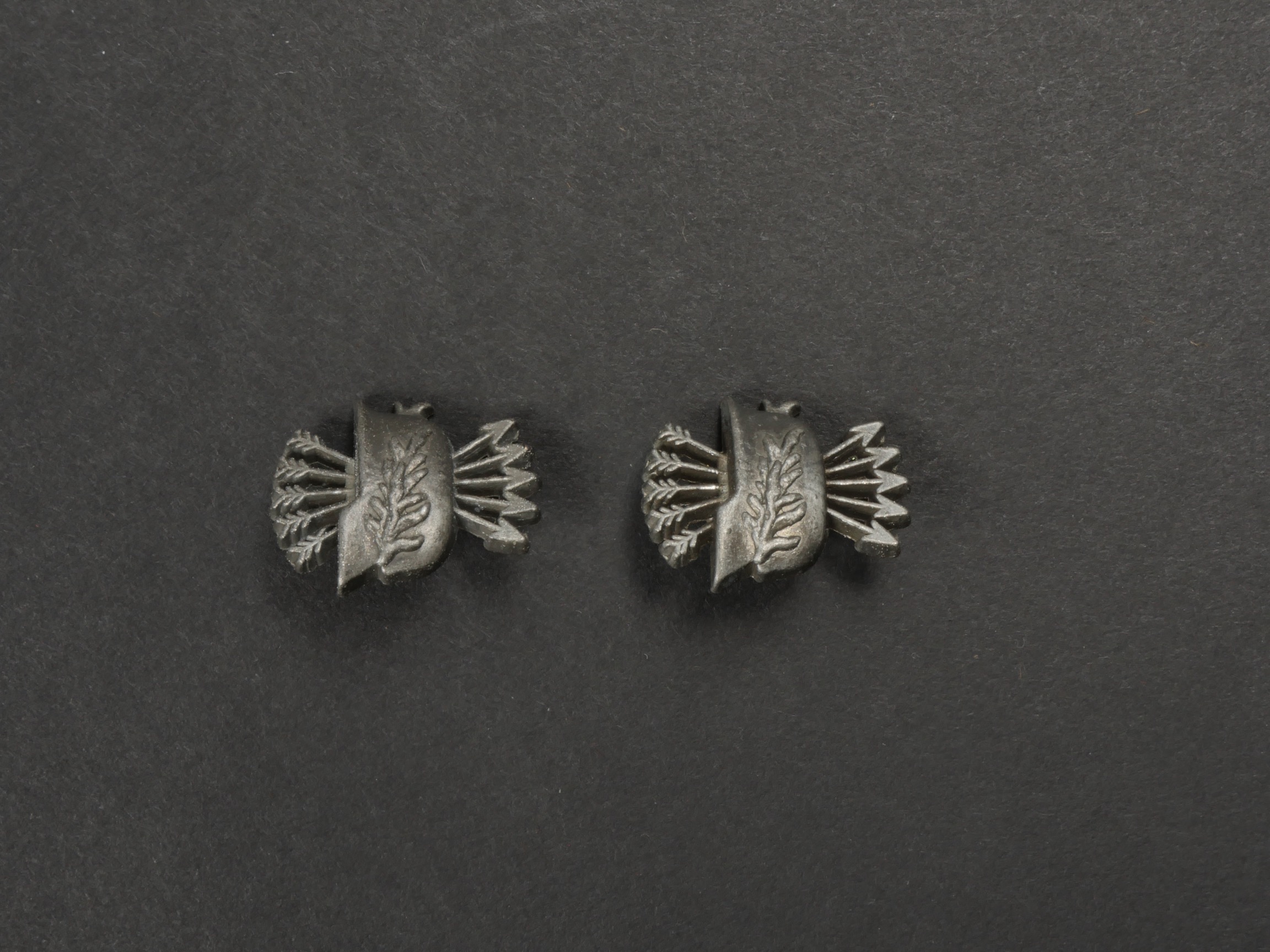 Ensemble d’insignes allemands. Comprenant deux aigles de poitrine Luftwaffe tissés en fil de coton blanc sur drap bleu, démontés d’un uniforme. Une médaille du front de l’Est... en savoir plus