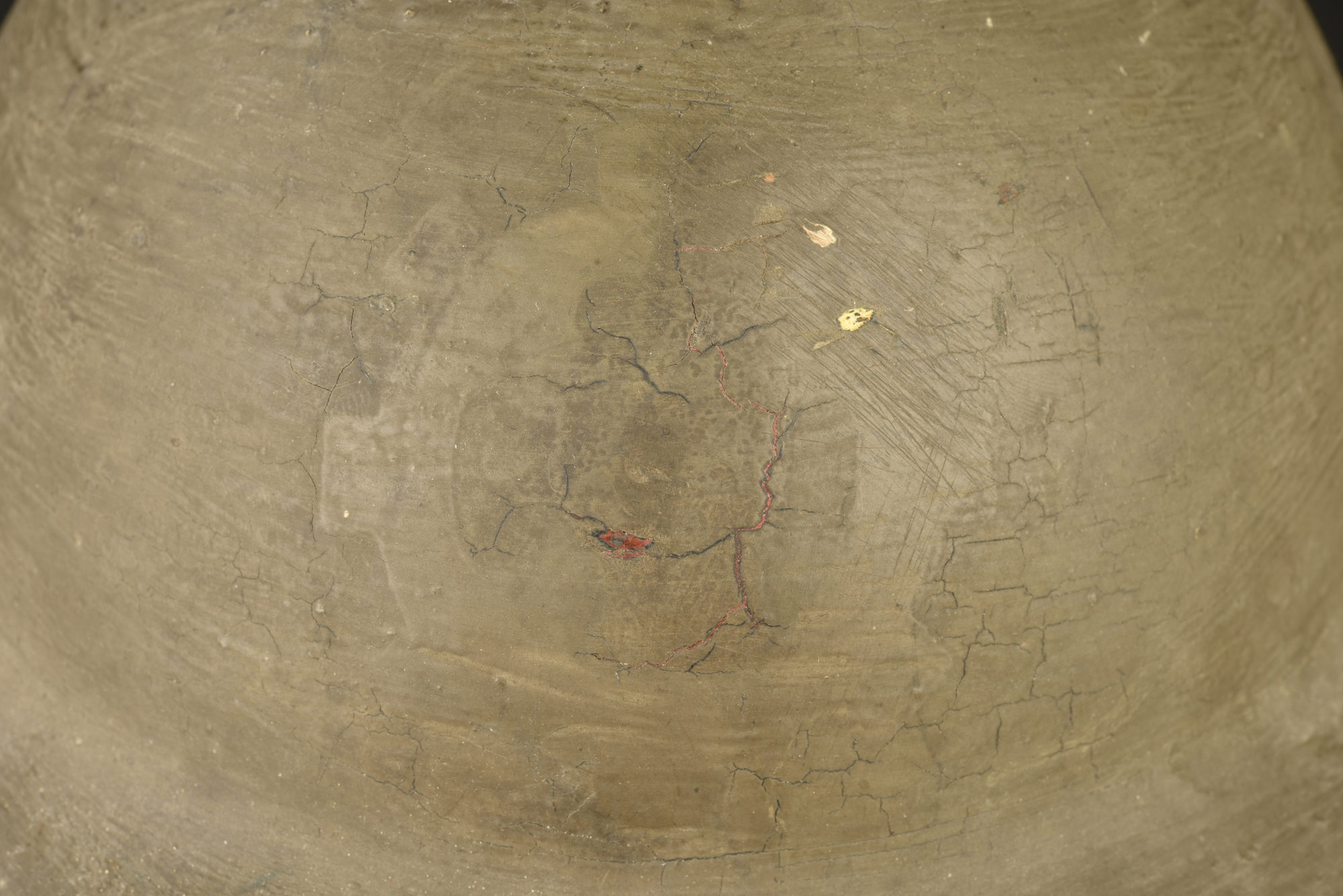 Casque anglais Brodie . Modèle sans jonc, peinture extérieure au pinceau à 90%, on distingue un insigne frontal rouge à l’avant, semblant représenter une roue dentelée avec une croix.... en savoir plus