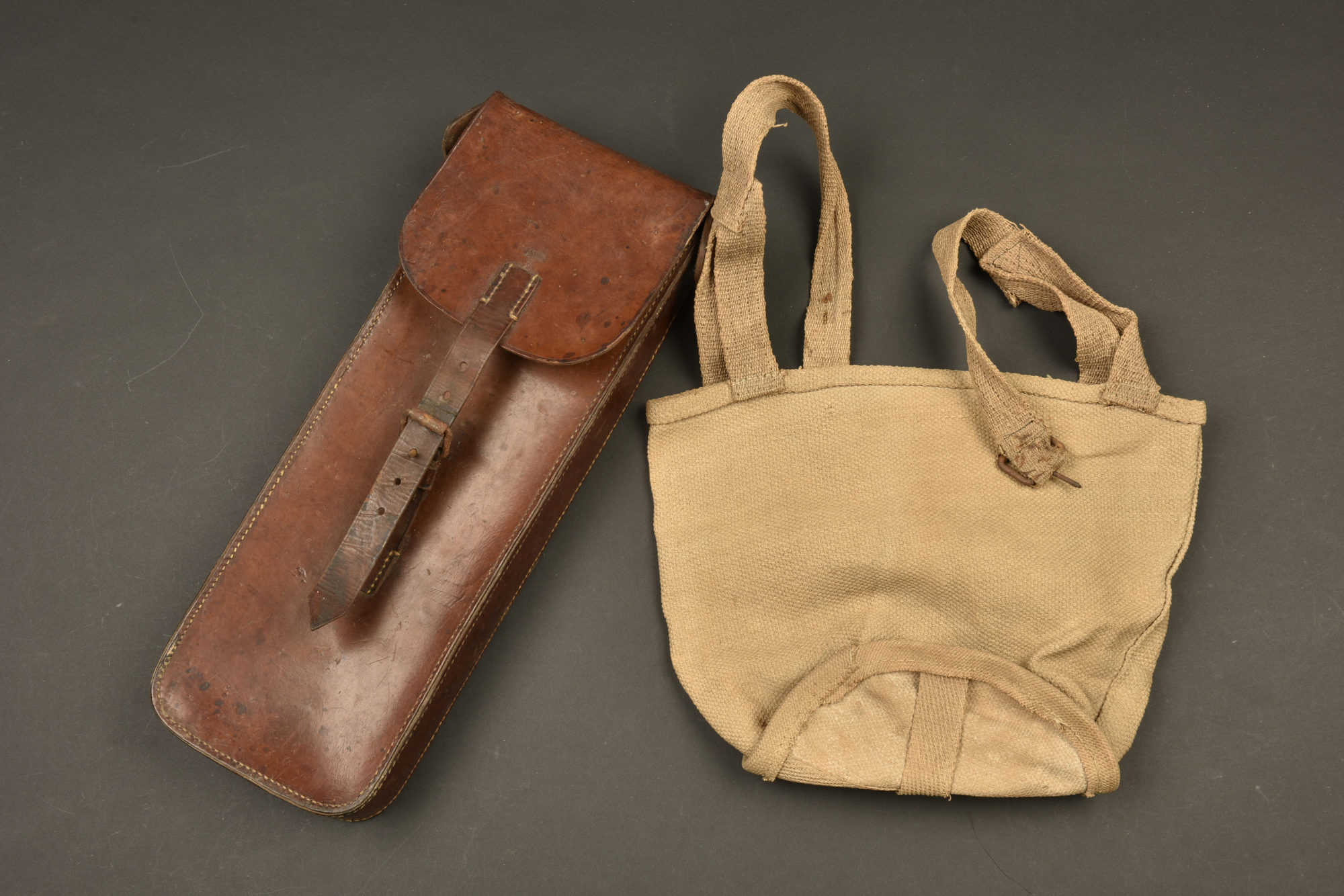 Ensemble de cavalerie allemande. Un saut en fibre d’ortie et un étui de cavalerie en cuir brun, passants absents.