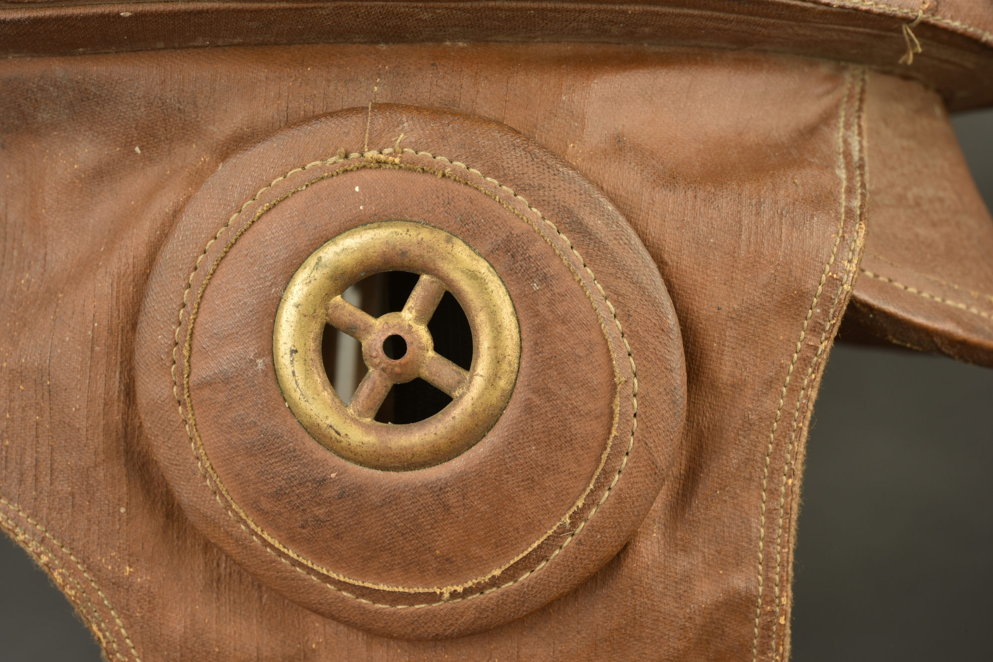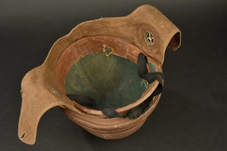 Casque de pilote type Roold. Bombe en liège recouverte de fin cuir marron, rabats avec protège oreille équipés de grille. Intérieur en tissu imperméabilisé, bas volets doublé en laine... en savoir plus