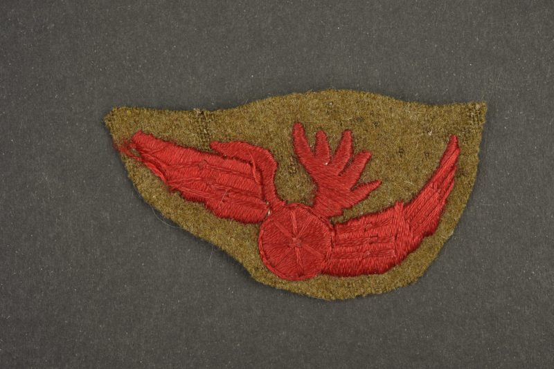 Rare insigne belge d’artillerie de tranchée modèle 1917. Rare insigne belge pour l’artillerie de tranchée, suivant le règlement du 29 mai 1917. Brodé rouge sur drap kaki. En tous points conforme aux croquis d’époque et à l’exemplaire présentés dans l’ouvrage sur l’armée belge de Pierre Lierneux. Au dos papier journal de l’époque. Très bel état, jamais cousu.
