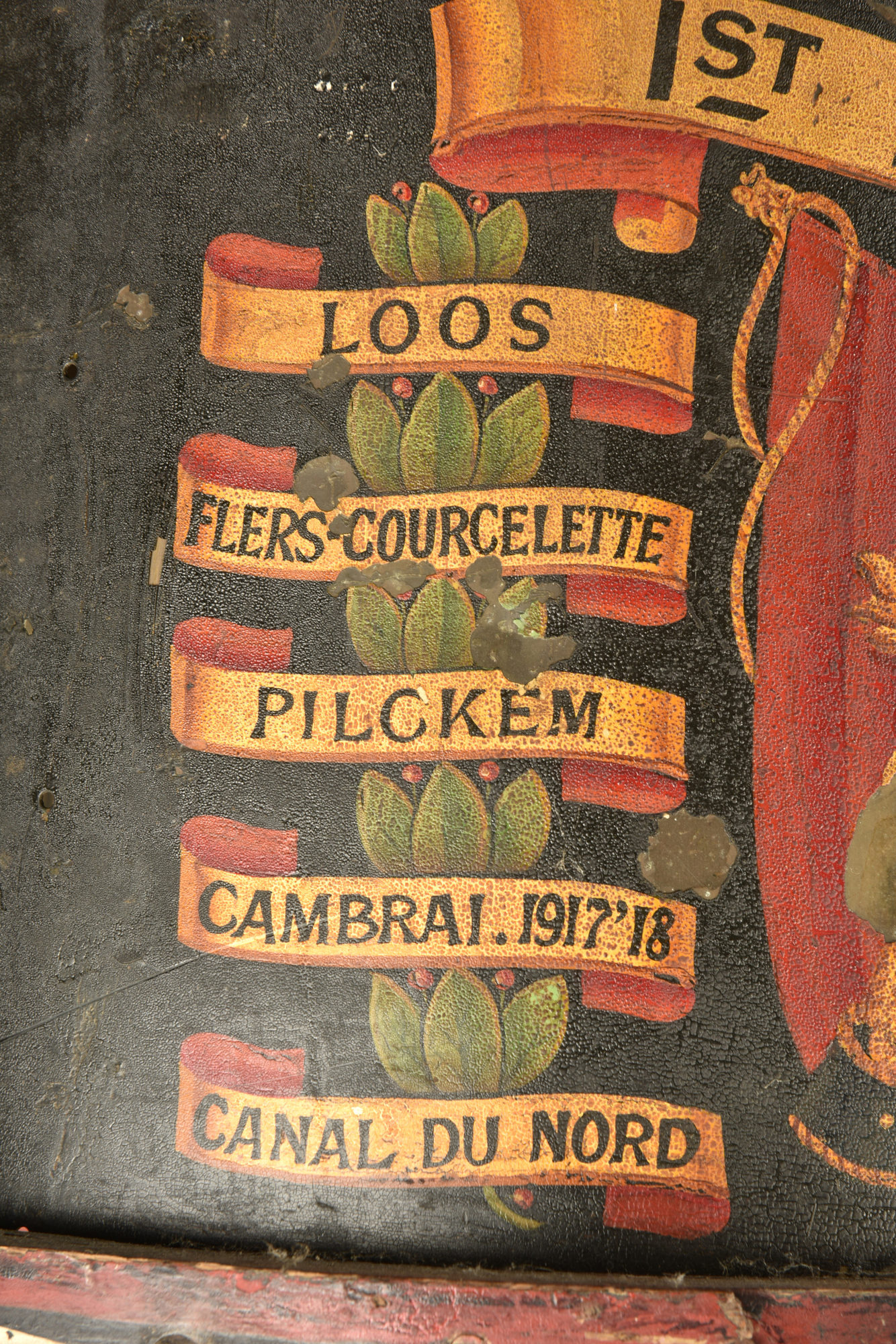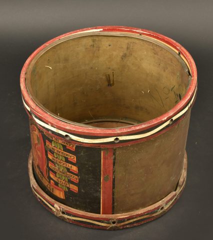 Tambour du 1st Battalion Welsh Guards. Fut en cuivre peint aux armes de Royaume, Poireau gallois, banderole marquée 1st Bon Welsh Guards avec banderoles honorifiques de part et d’autre... en savoir plus